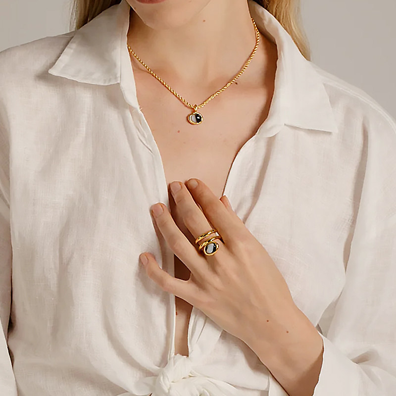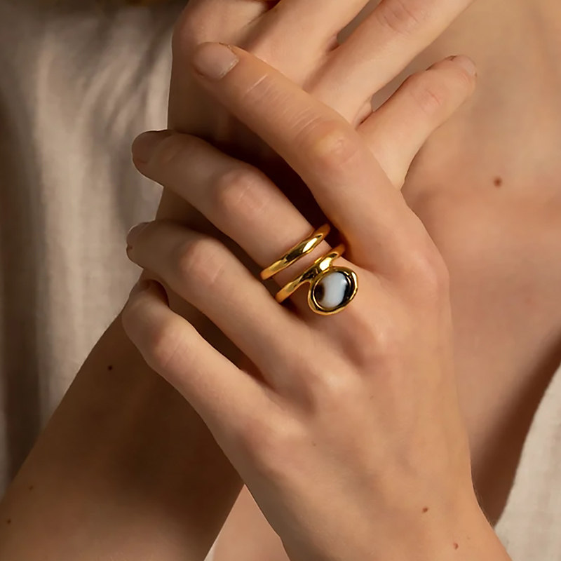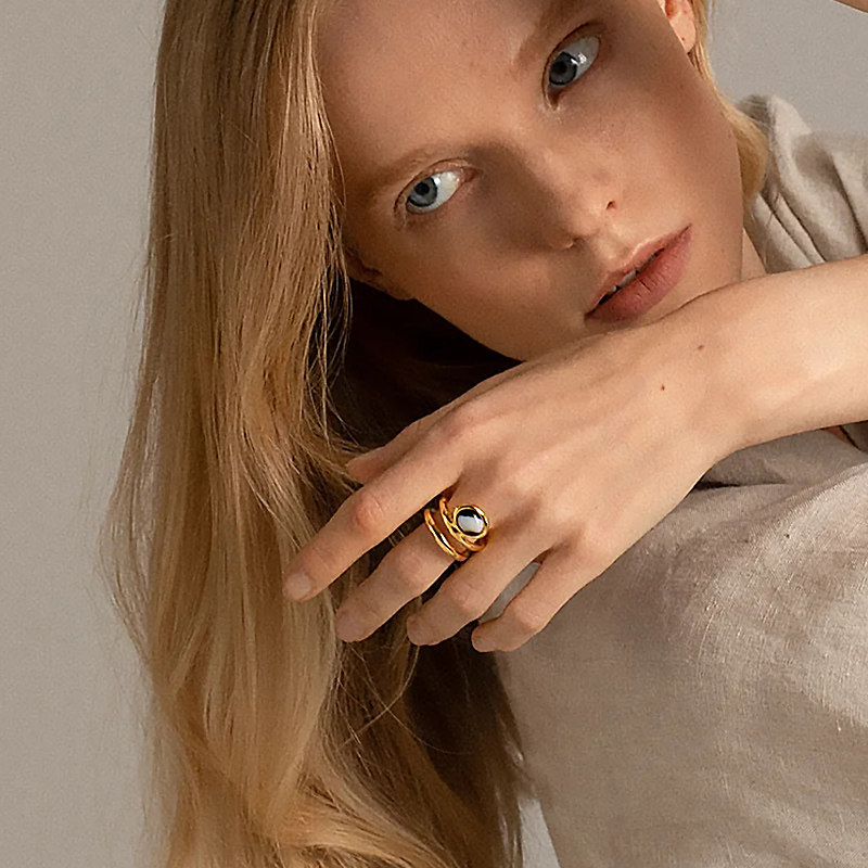 江疏影同款unfolds宝石戒指几何圆圈缠绕复古气质女小众设计指环