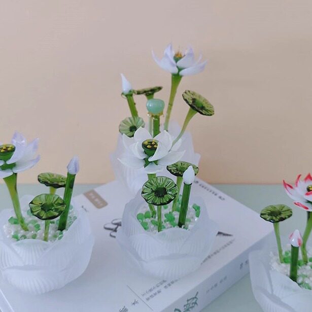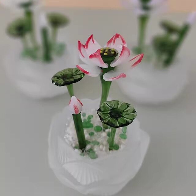 淄博琉璃荷花多肉盆栽摆件迷你桌面摆件家居书桌装饰品