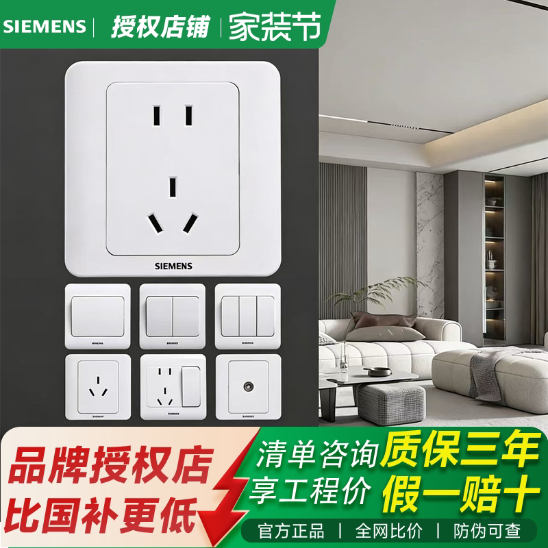 西门子远景雅白开关插座面板86型家用一开五孔双控开关家用开关