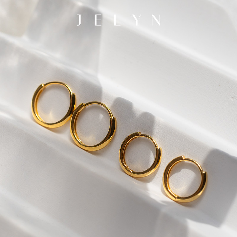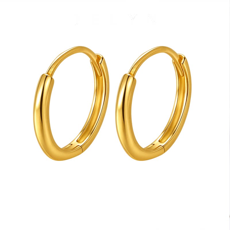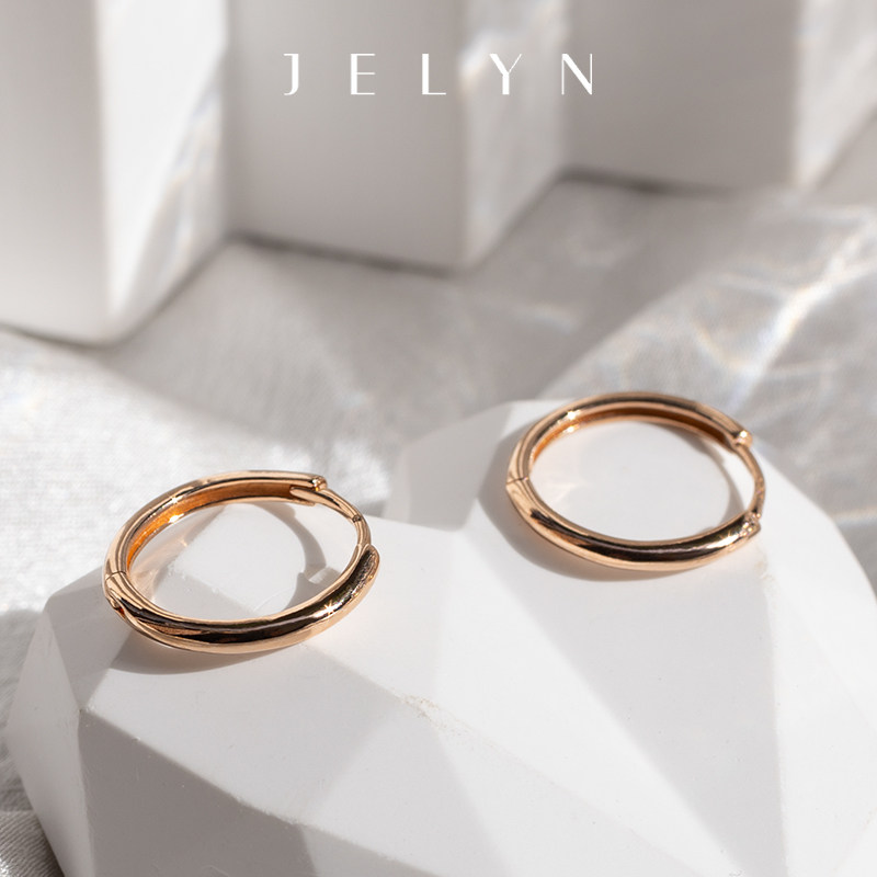 简约质感百搭玥景18K玫瑰黄金750养耳素金光面男女耳圆圈耳环耳扣
