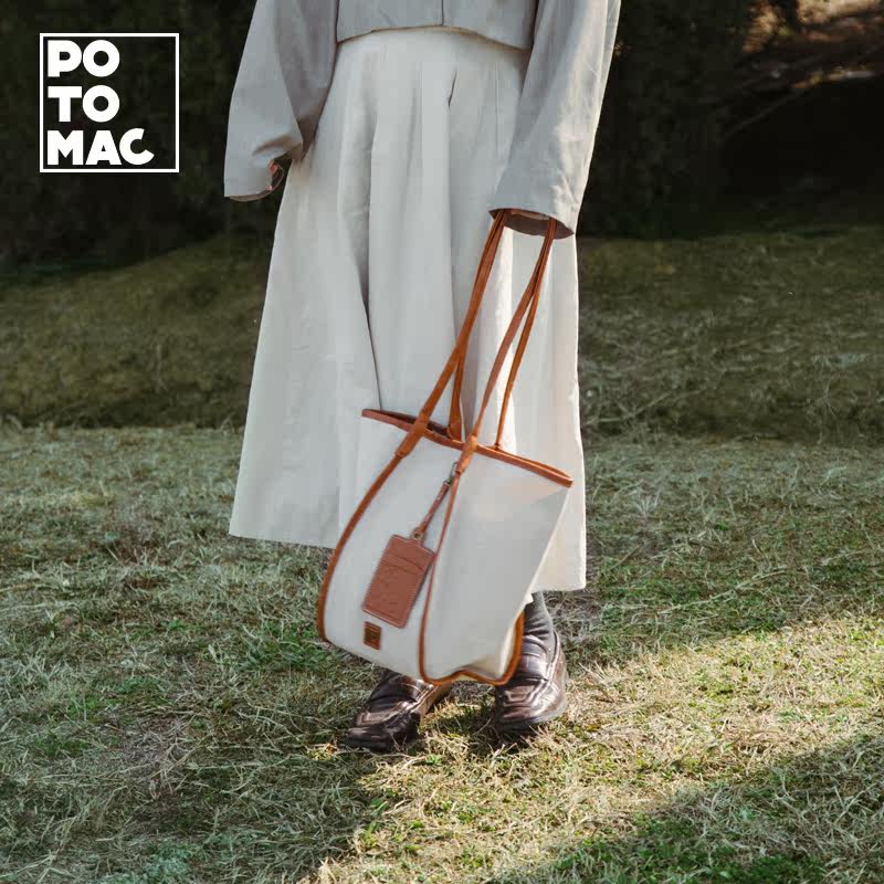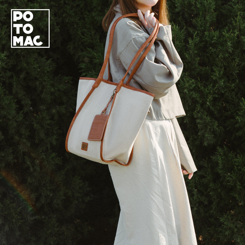 potomac帆布水桶包女原创设计时尚单肩手提大容量潮流通勤托特包
