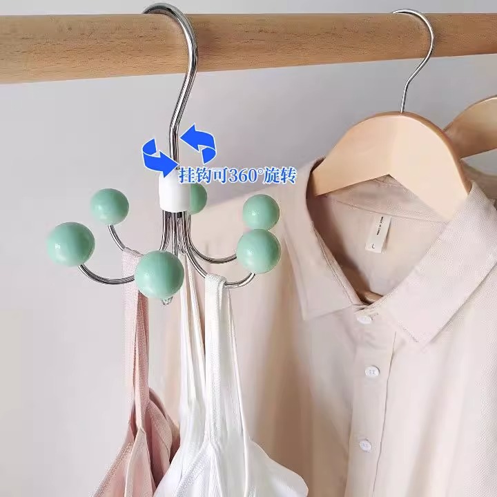 360°可旋转挂钩家用衣柜收纳神器多功能柜子挂帽子内衣六爪挂钩