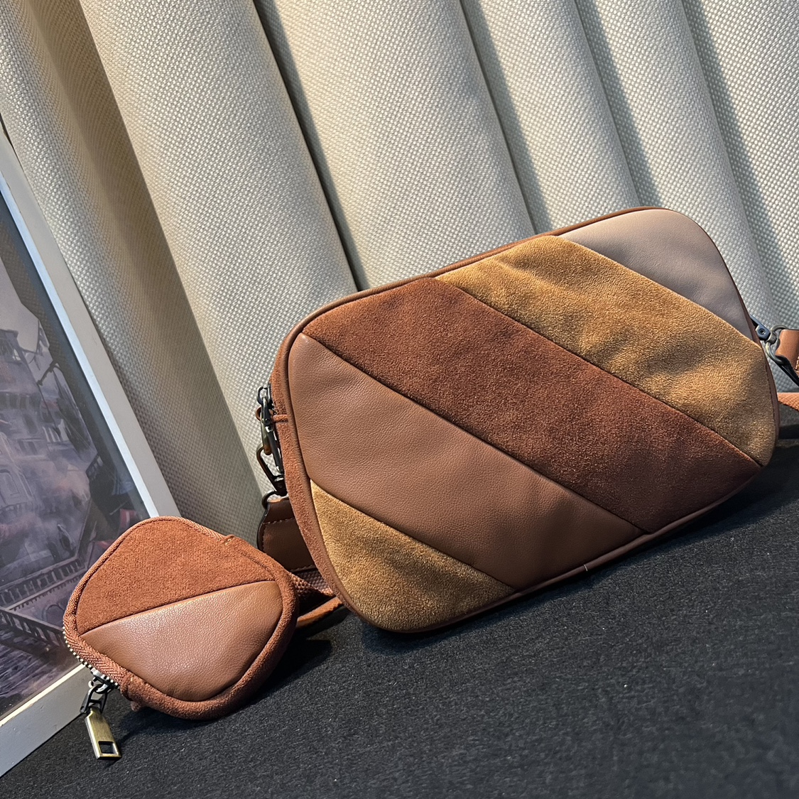 强烈推荐欧美单出口意大利秋冬新款撞色相机包女包磨砂绒面斜挎包