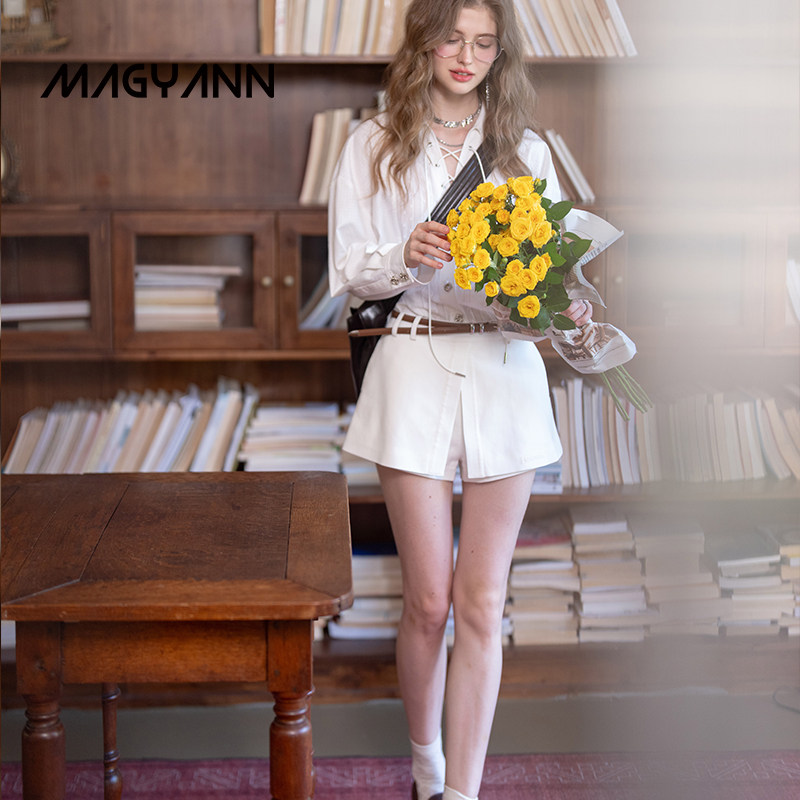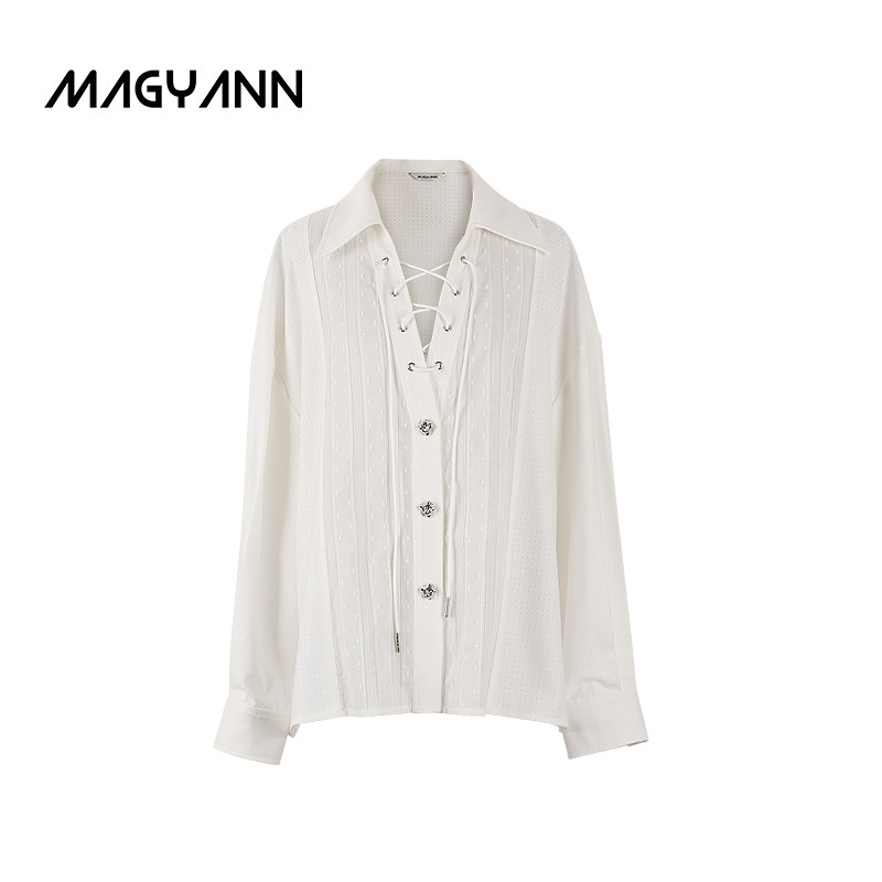 【白鹤】Magyann设计师原创2026春V领通勤镂空拼接系带拼接衬衫女