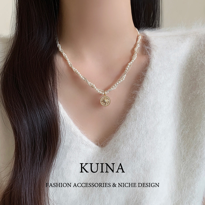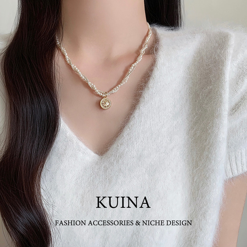 法式双层珍珠项链女八芒星吊坠轻奢高级感颈链锁骨链2026新款配饰