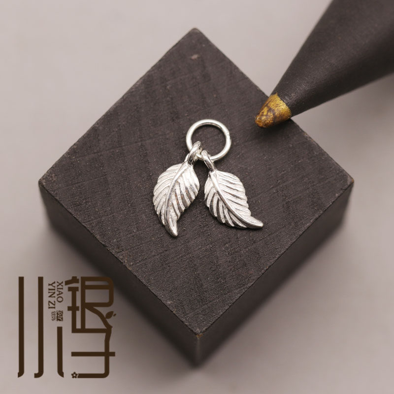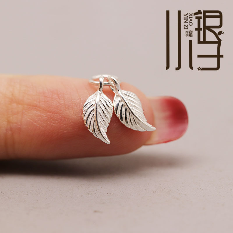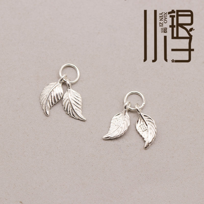 素银吊坠 迷你柠檬树叶叶片挂坠S925纯银银饰DIY手工编绳串珠配件