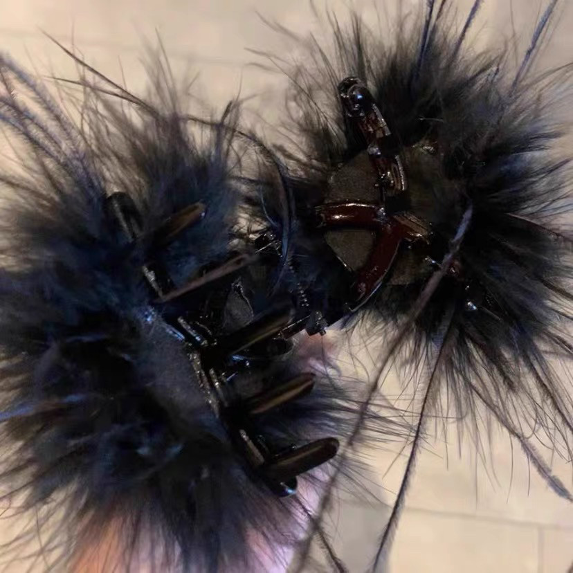 2025新款羽毛抓夹6厘米小号黑色羽毛夹显发量高马尾夹半扎披发卡
