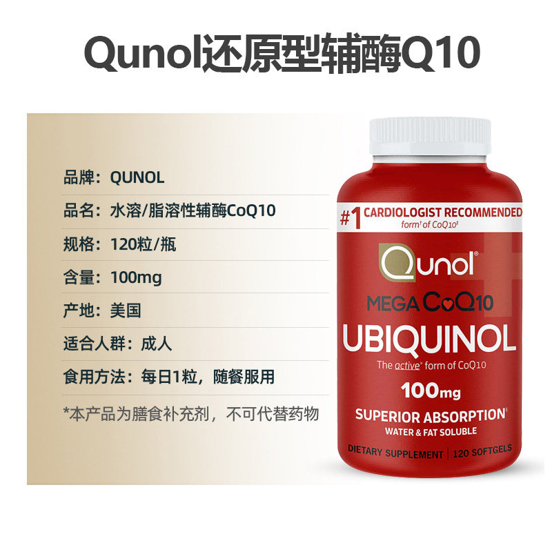 美国直邮 Qunol辅酶CoQ10软胶囊还原型泛醇水溶性中老年心脏进口