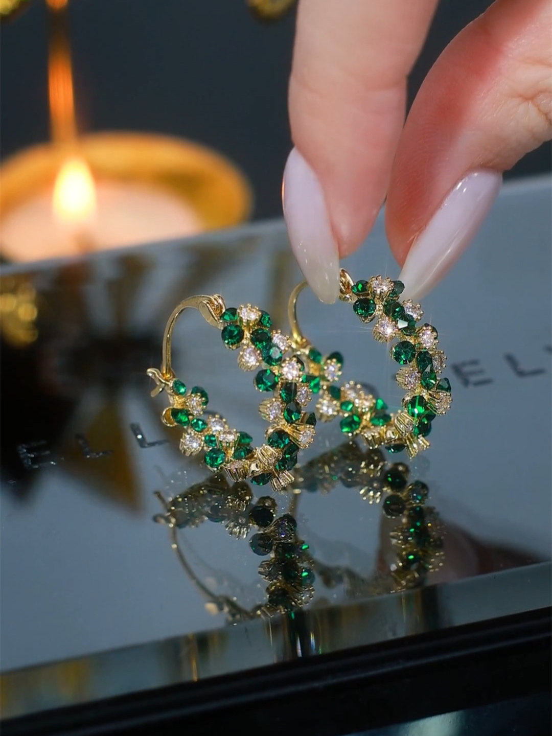 绿色繁星点点锆石耳圈耳环女设计感精致轻奢网红百搭耳饰2024新款