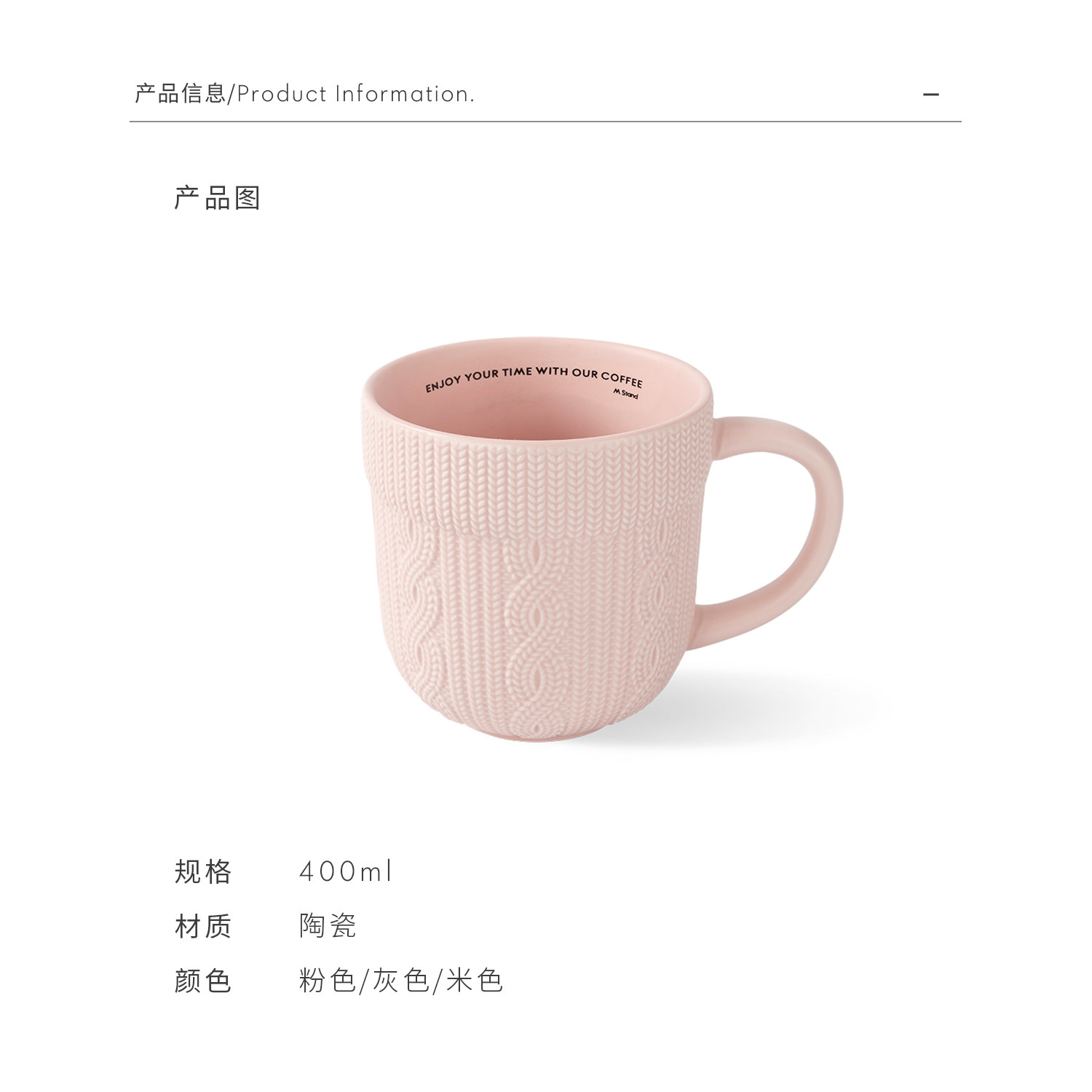 M Stand粗麻花纹理陶瓷杯复古编织纹马克杯高颜值咖啡杯礼物