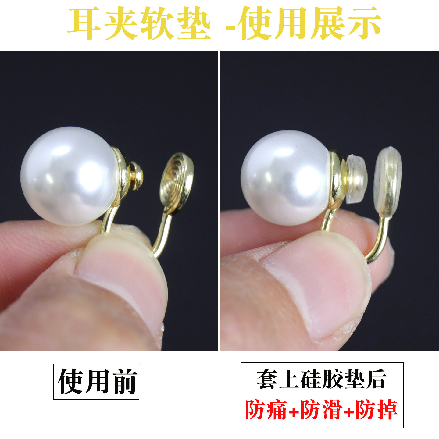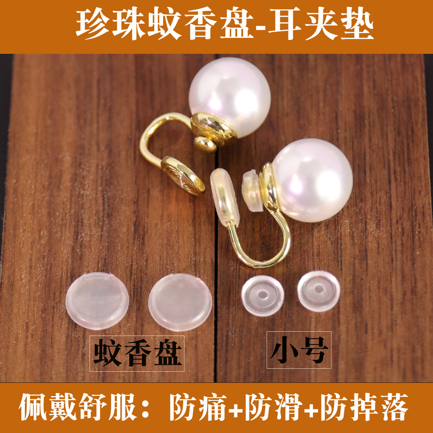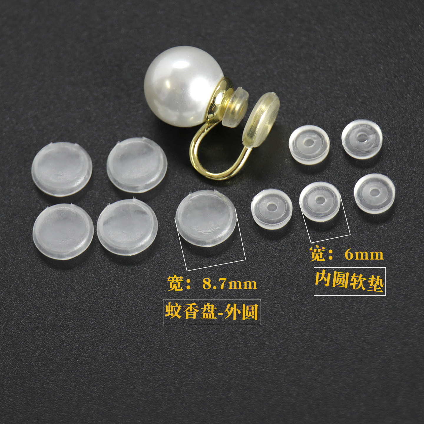 珍珠蚊香盘耳夹垫 防滑防痛垫螺旋硅胶橡胶耳垫无耳洞耳夹套配件