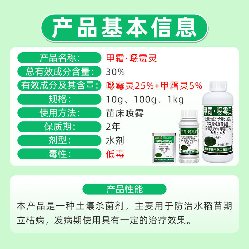 绿亨邦农盛30%甲霜恶霉灵水稻苗期立枯病治疗苗床喷雾土壤杀菌剂