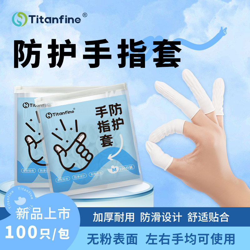 Titanfine防护手指套加厚防滑美甲纹绣电子清洁一次性指套