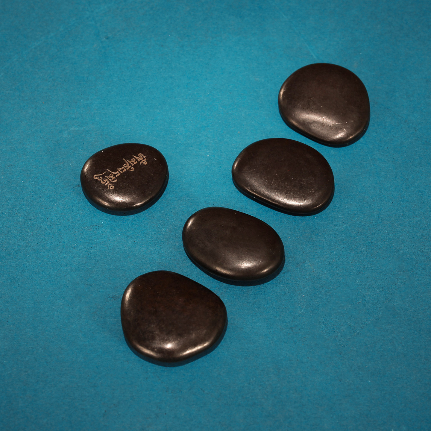 藏族玛尼石许愿石藏式迷你摆件手工雕刻彩绘六字真言桌面吉祥客厅