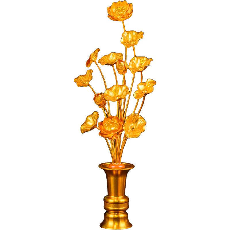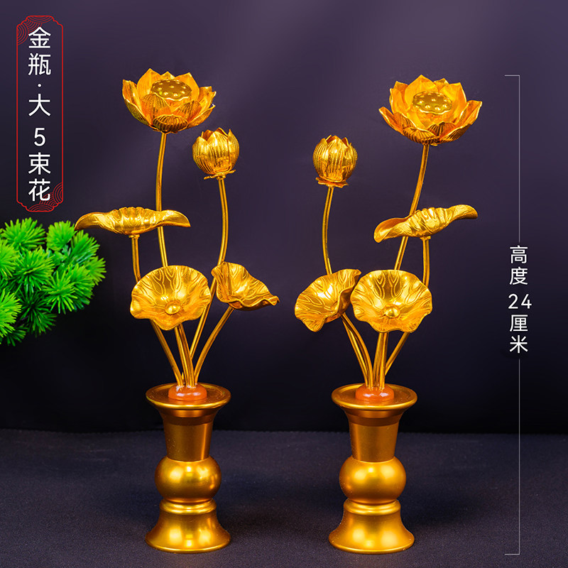 日式鎏金莲花花瓶佛具合金供金花用品金色莲花摆件家用莲花佛前花