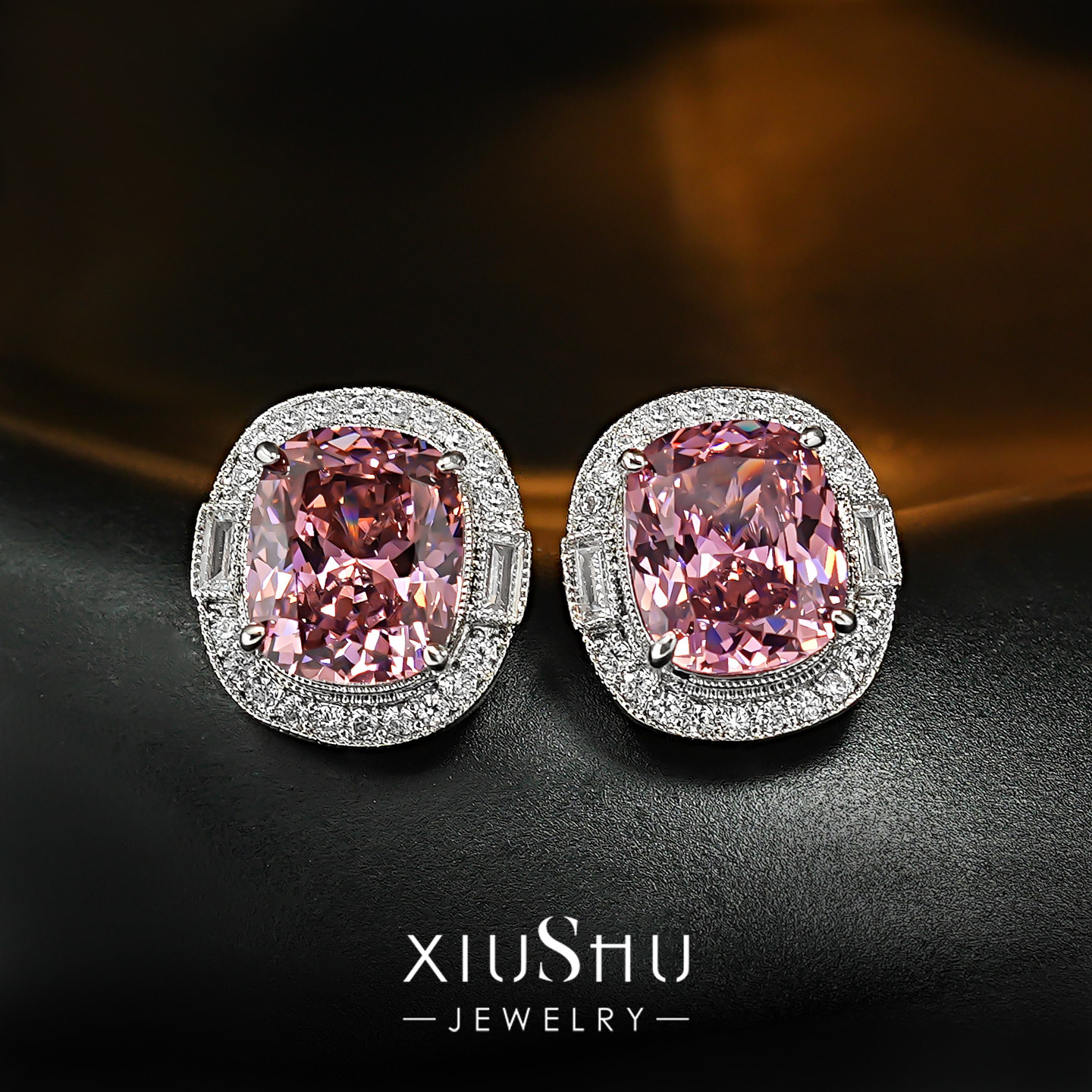 爆闪雷迪恩碎冰切割粉钻色耳钉女高级感满钻围镶气质耳饰晚宴新款