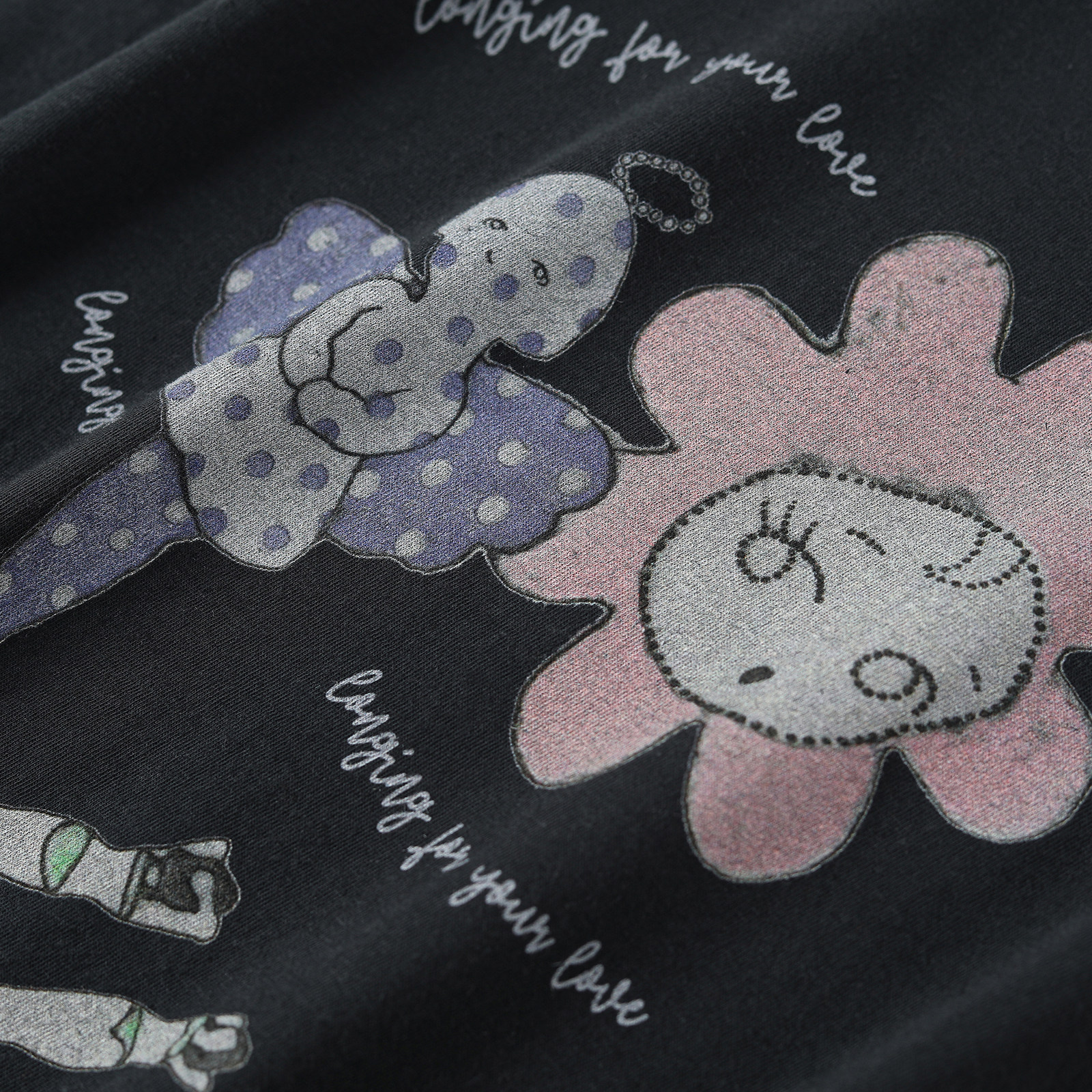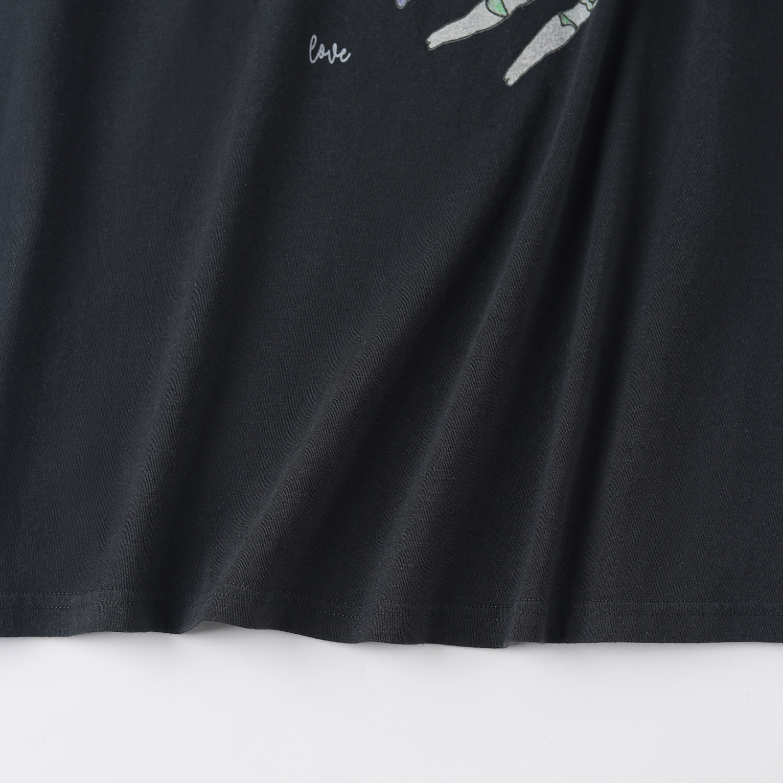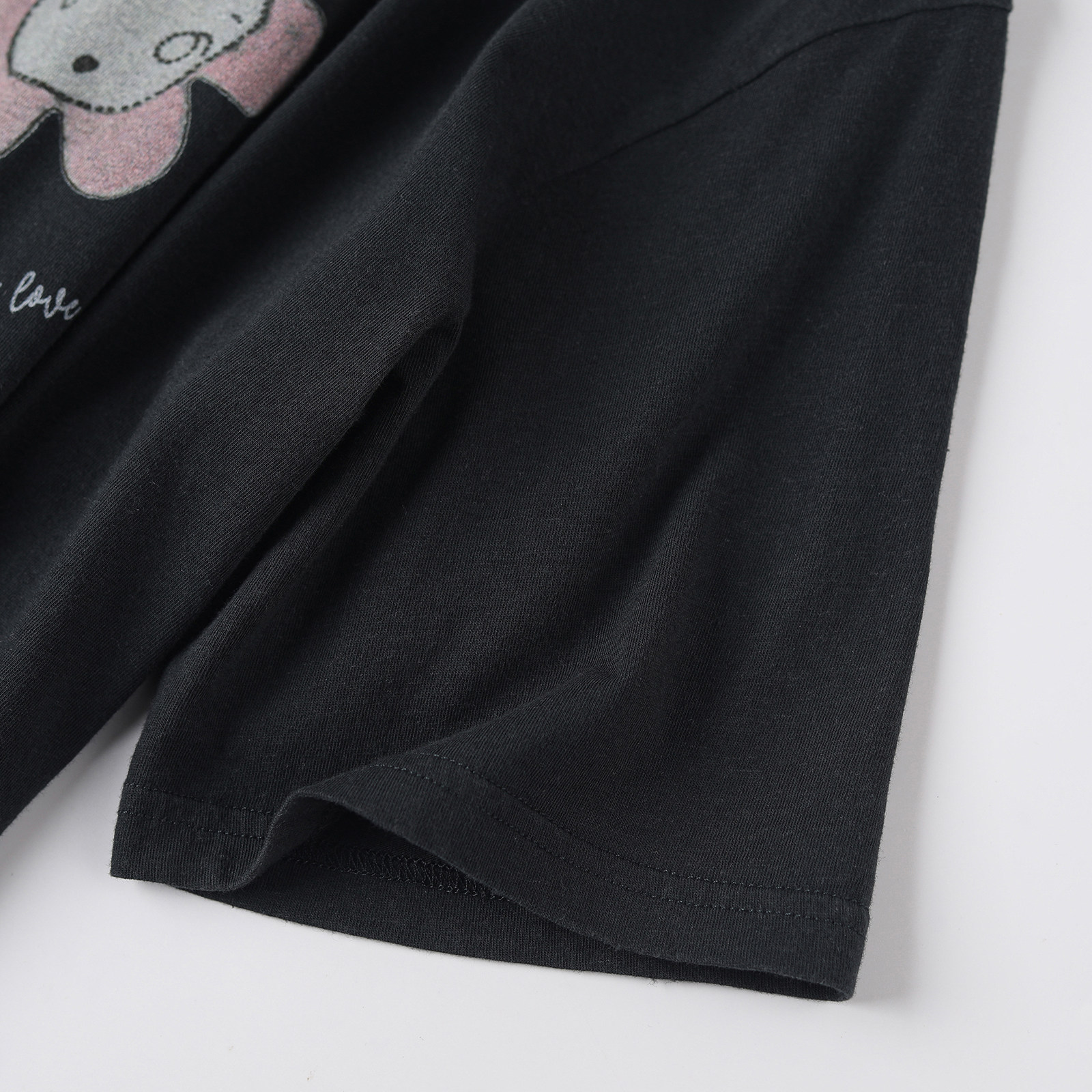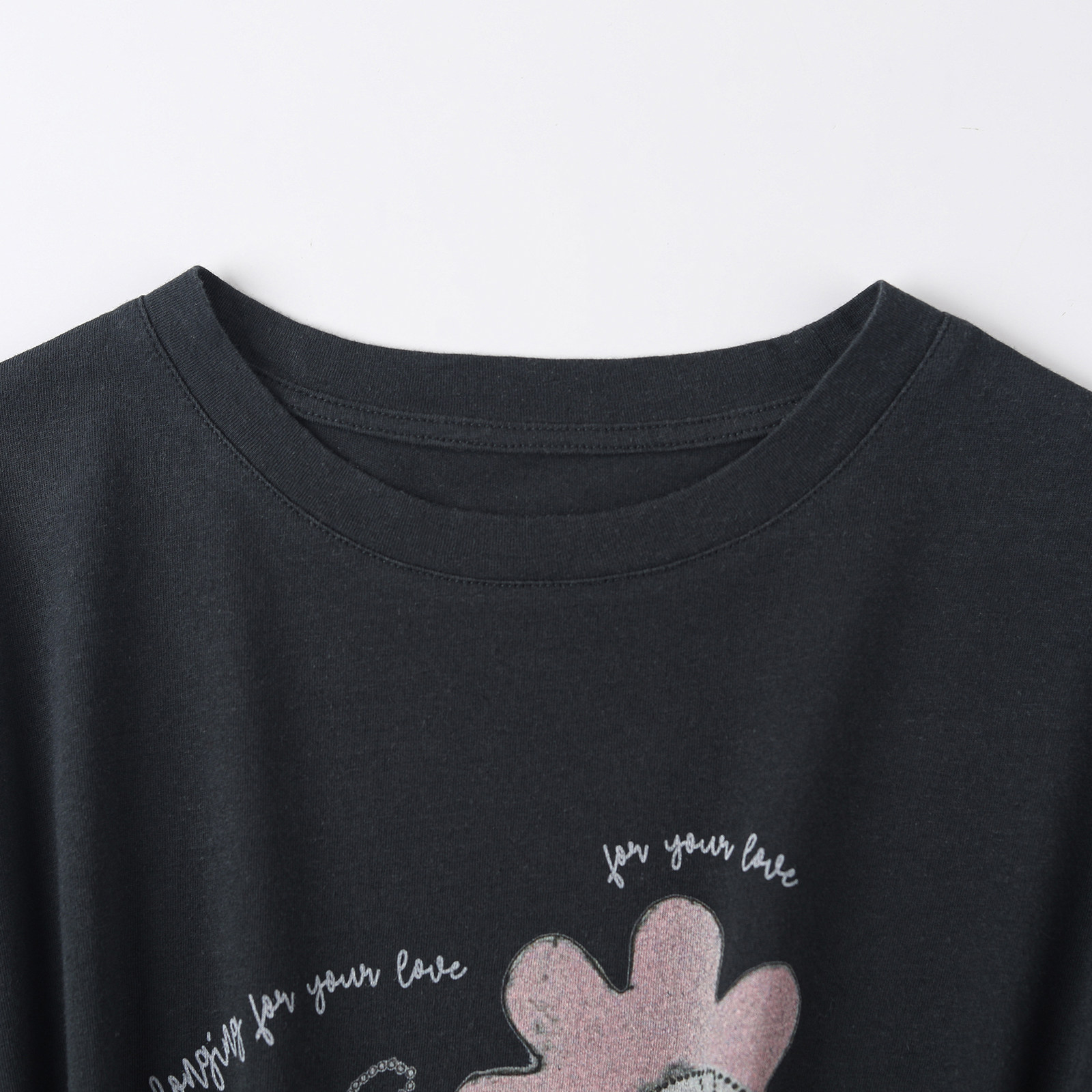 wana try水洗做旧花朵童趣少女T恤2026春季新品黑色休闲短袖女
