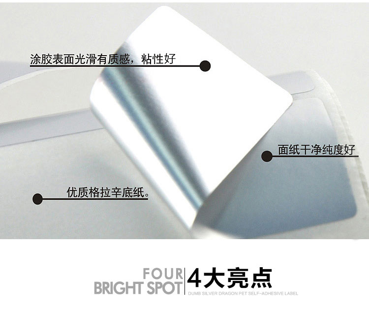 超粘高粘亚银/亮白pet不干胶标签纸100 90 80 70 60 50 40 30 20