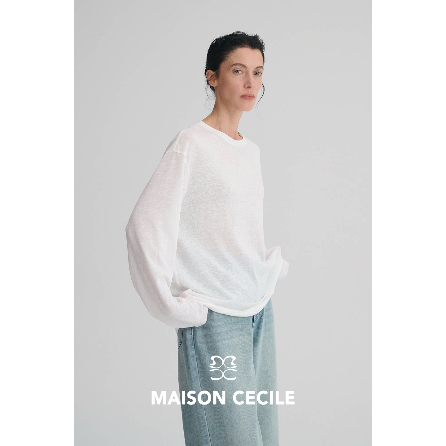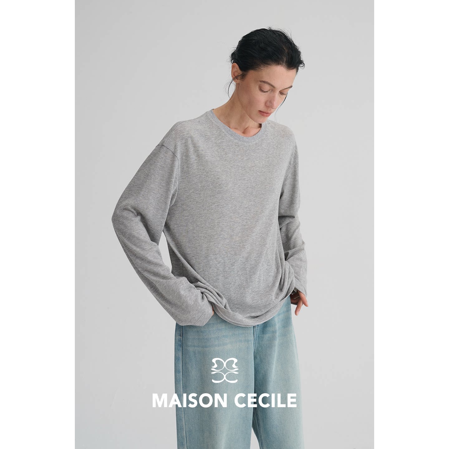 MAISON CECILE 三色|雪花棉天丝肌理宽松简约随性休闲百搭长袖T恤