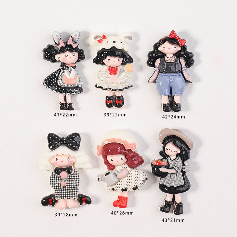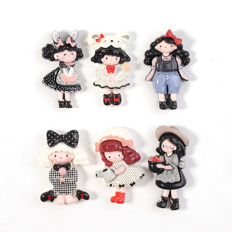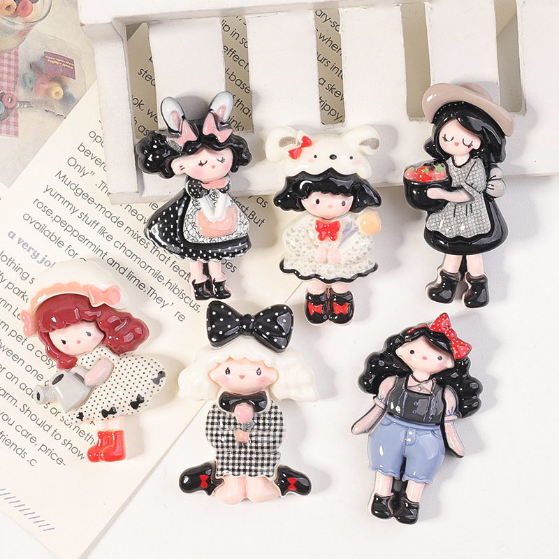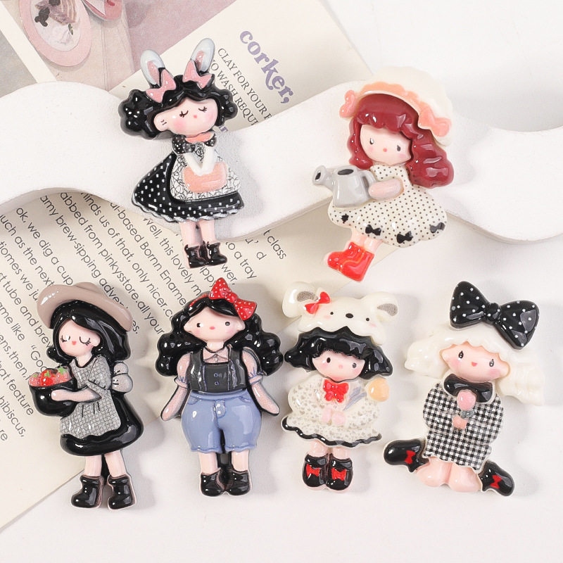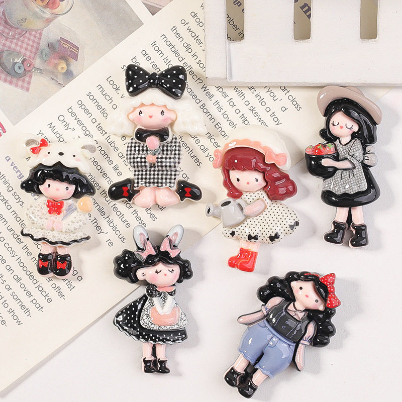 diy饰品配件卡通可爱黑色小女孩裙子树脂奶油胶手机壳贴片配件