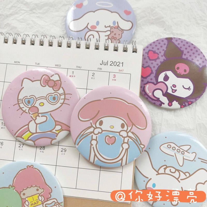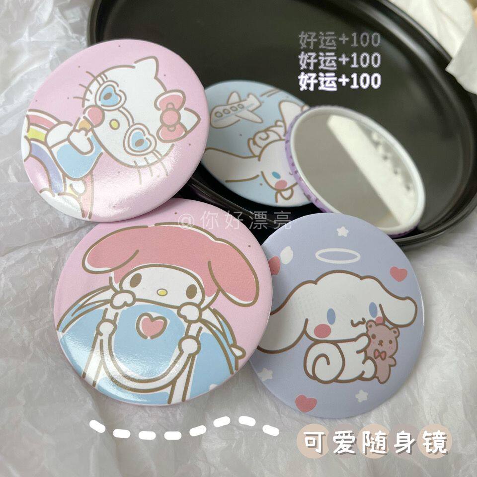 三丽鸥ins风美乐蒂卡通创意小圆镜玉桂狗少女心便携随身镜小镜子