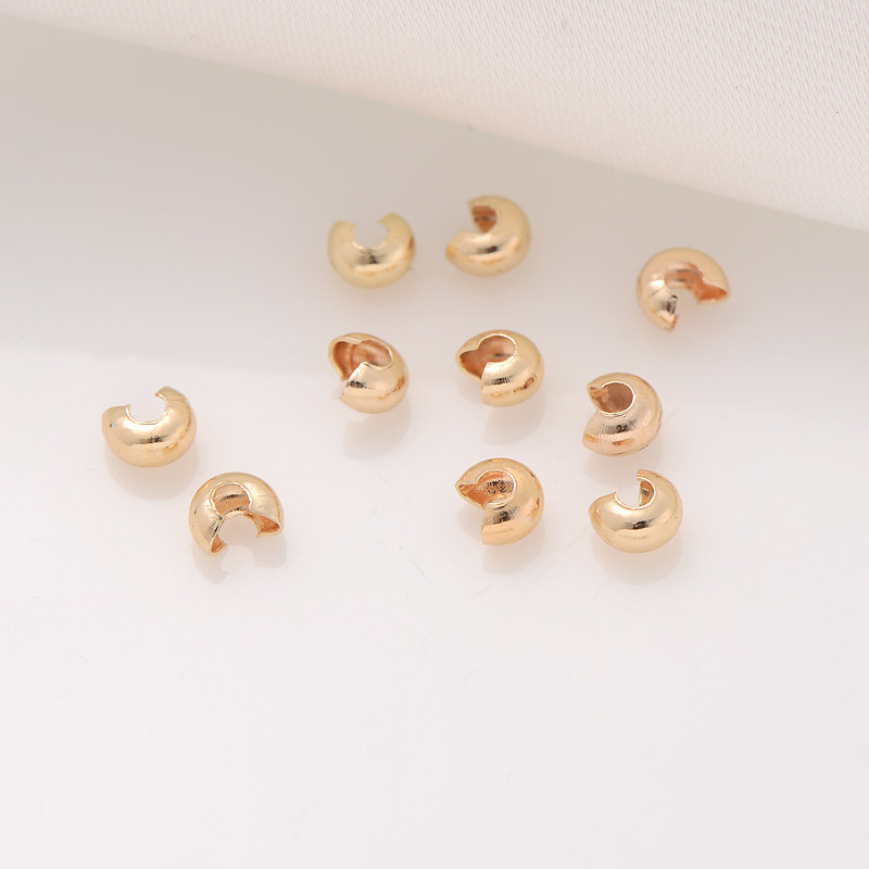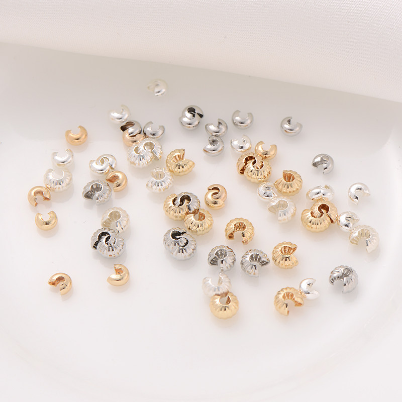 14K包金光面月牙扣手工diy手链定位珠遮丑珠白金色南瓜纹半月c扣