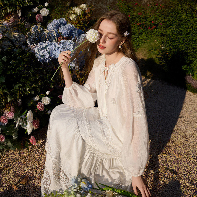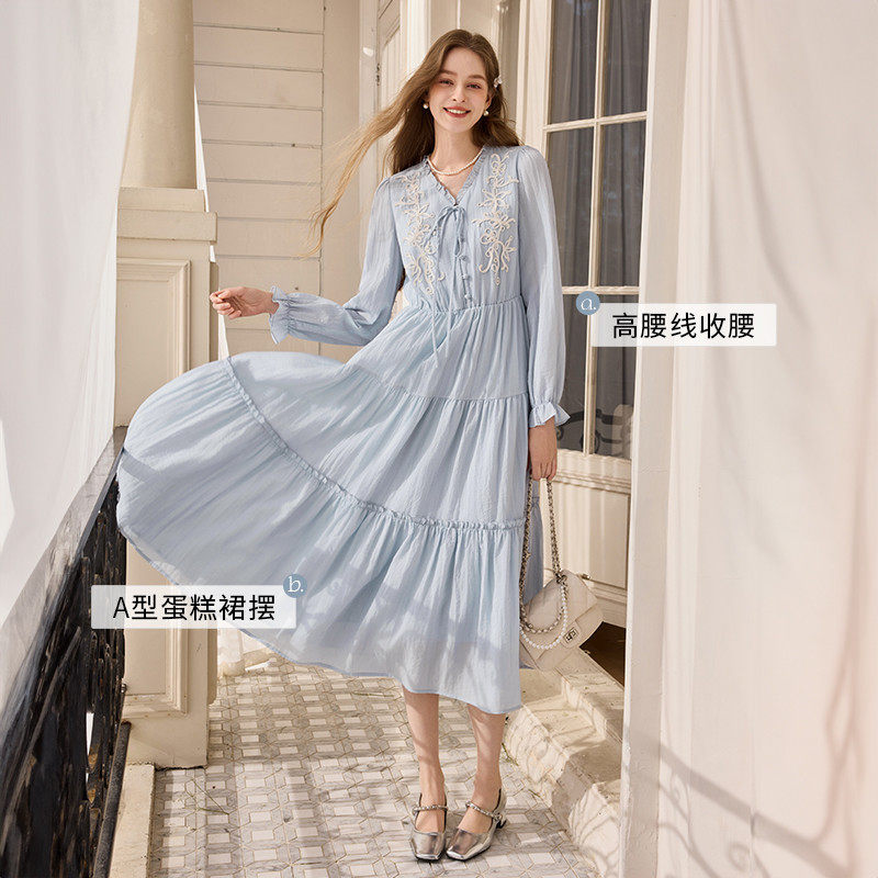 【所有女生的衣橱直播间】香影度假风v领蓝色连衣裙女2026春装