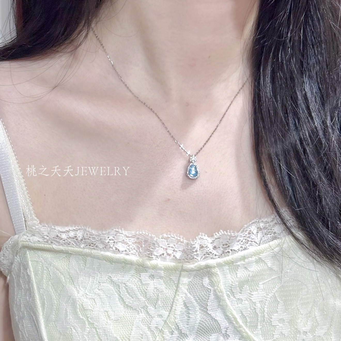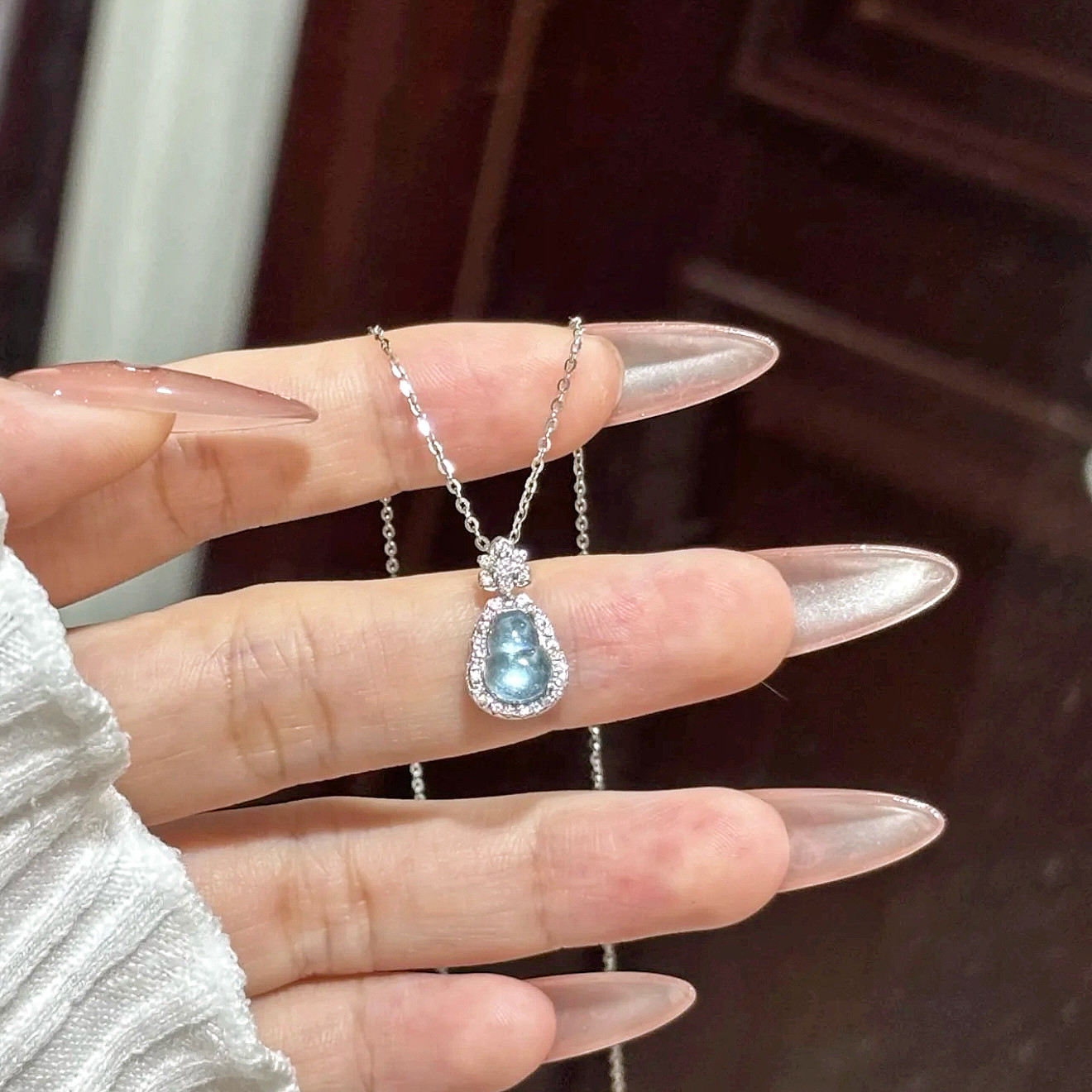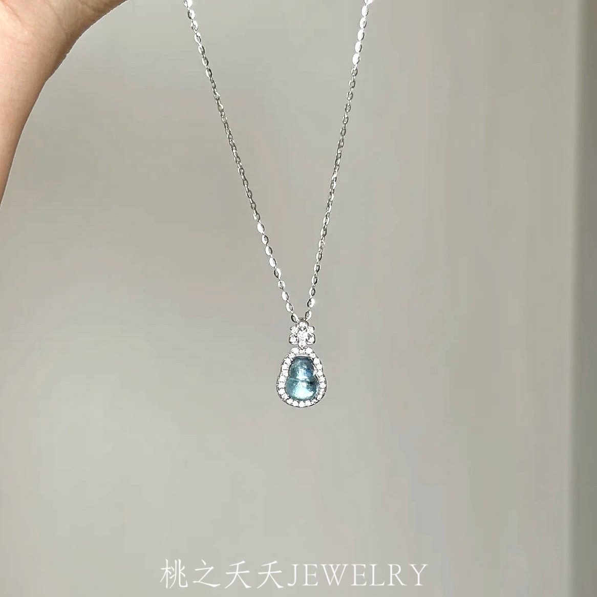 「冰蓝心语」天然海蓝宝葫芦纯银项链女高级感颈链锁骨链项链轻奢