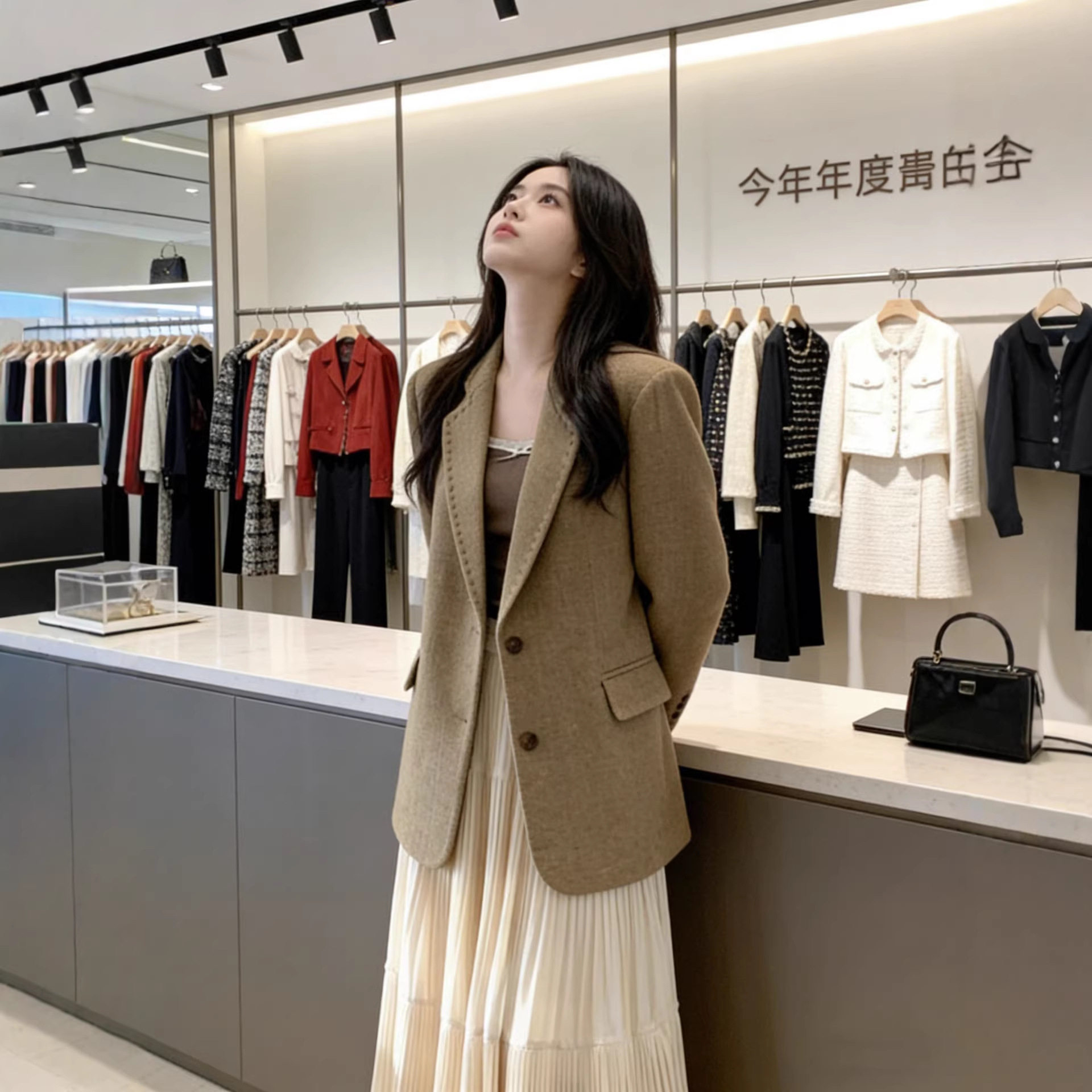早春季一整套ootd穿搭减龄小香风气质极简西装外套半身裙子套装女