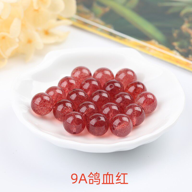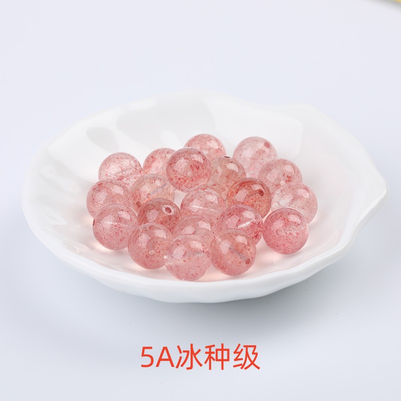 单颗7A天然星光草莓晶散珠子绿草莓手串鸽血红手链粉红色DIY配件
