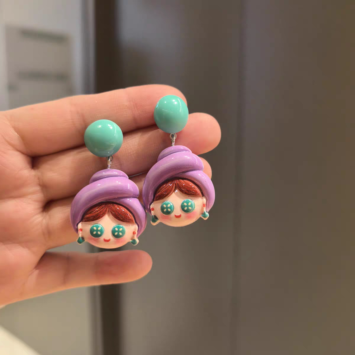 2025新品多巴胺暴富富婆手作可爱卡通女孩树脂耳饰耳钉无洞耳夹