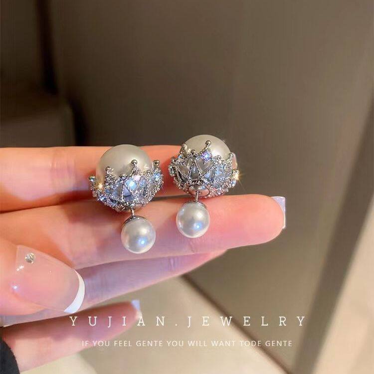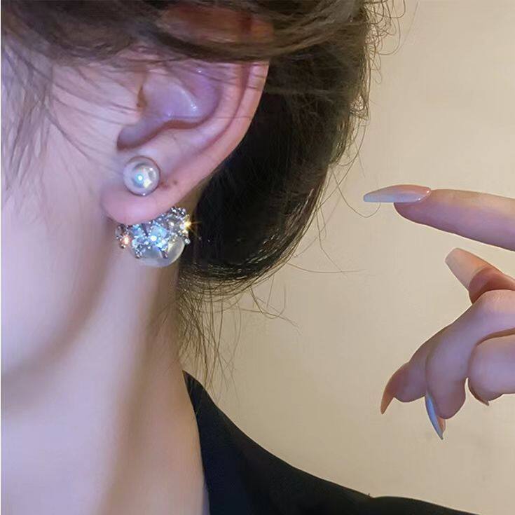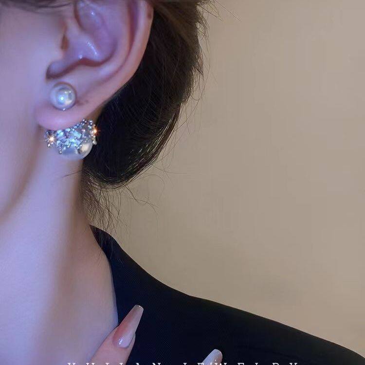 前后戴镶钻珍珠耳环轻奢高级感时尚气质名媛耳钉女小众设计感耳饰