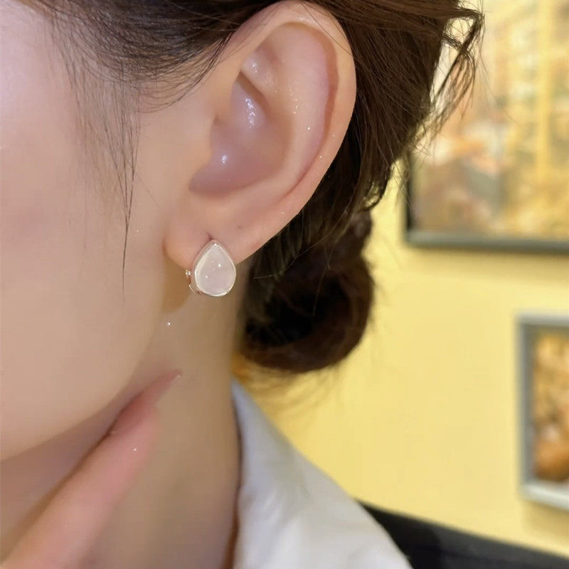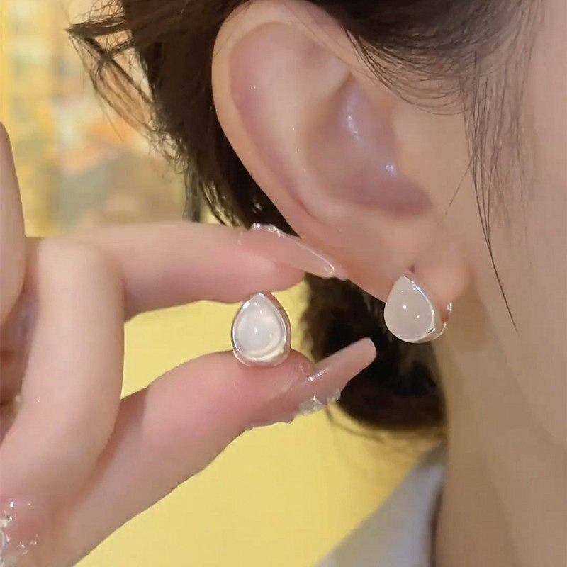 银耳环9999纯银女正品猫眼石双面水滴耳扣百搭2025新款爆款防过敏