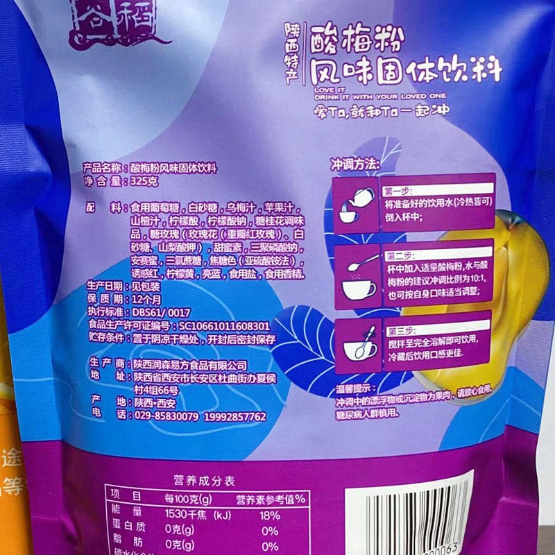 丝绸谷稻酸梅粉甜橙粉325g/袋陕西特产风味固体饮料甜橙果味新货