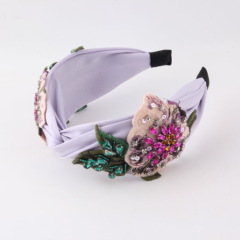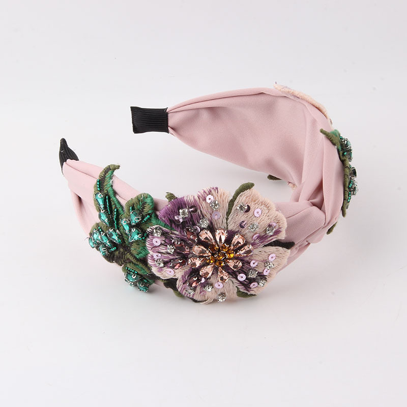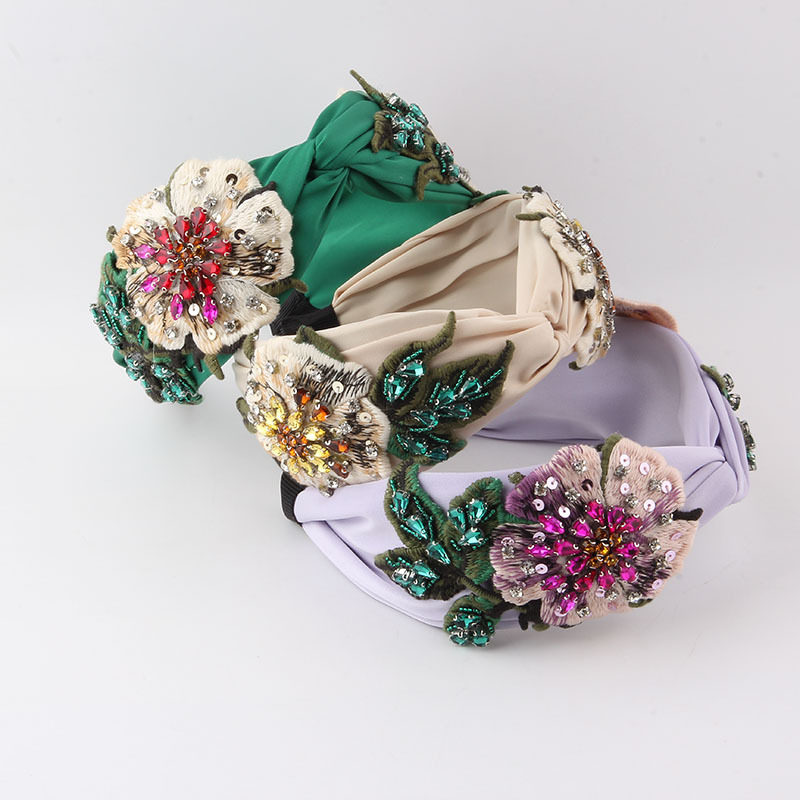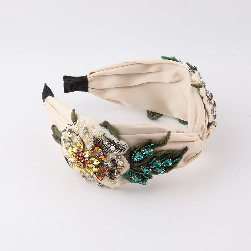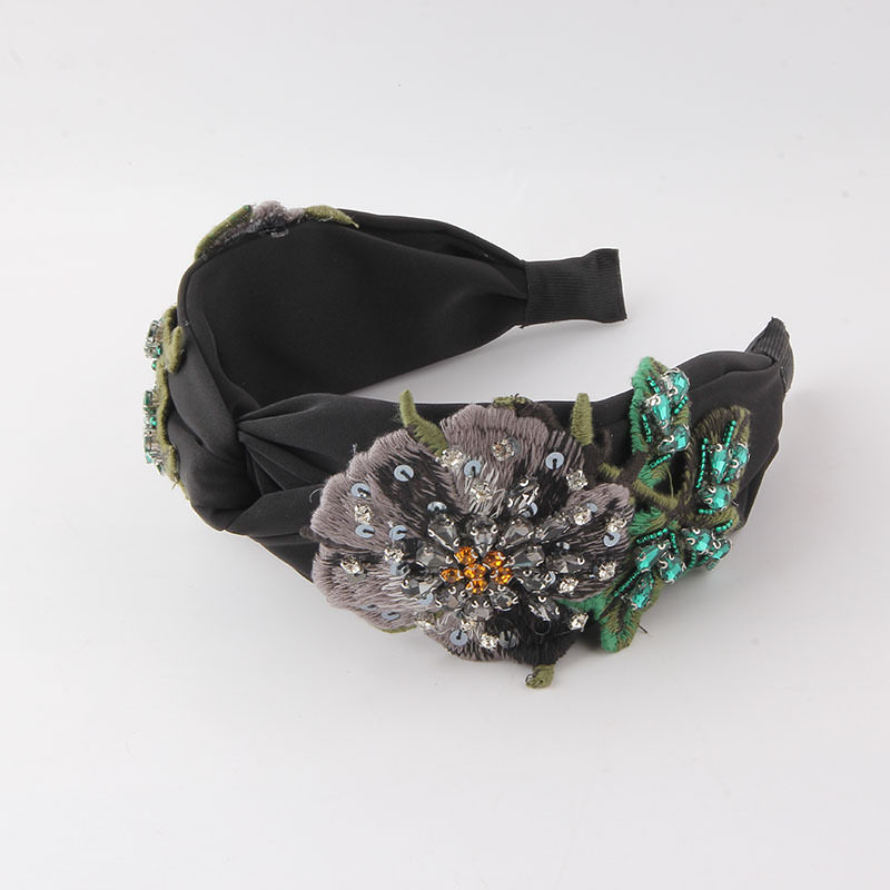 晶本头饰新款时尚欧美宽边布料镶钻花朵轻奢发箍女士写真街拍发夹