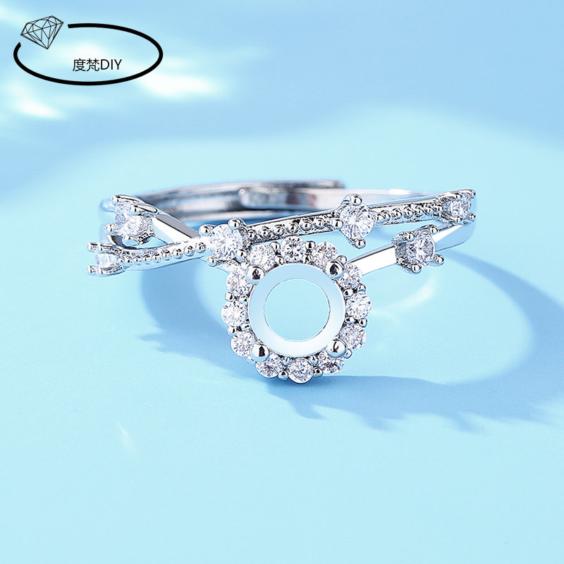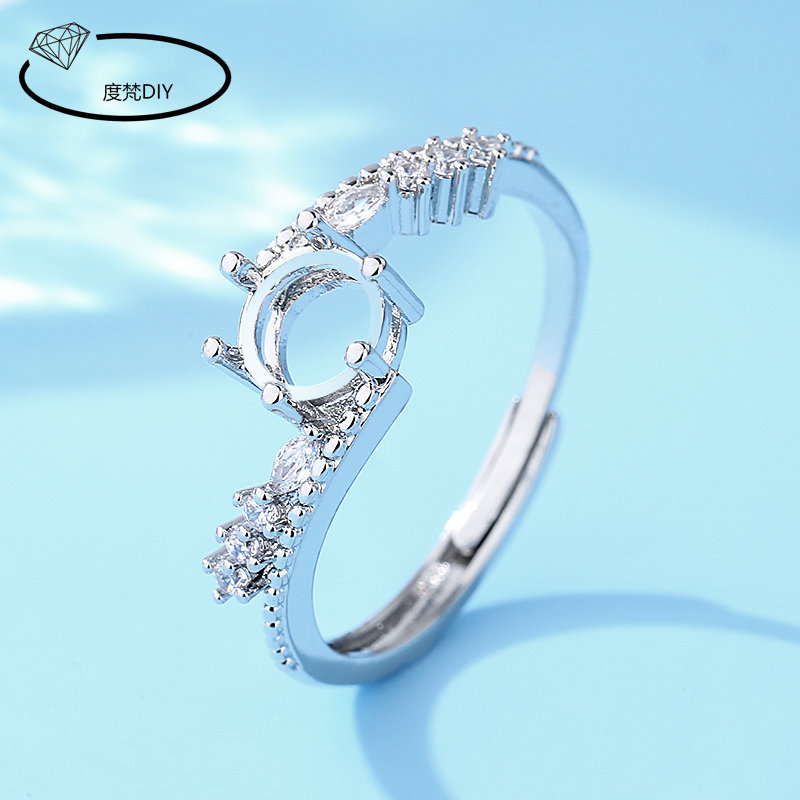 万能diy戒指空托S925镀银开口女戒指裸托镶嵌宝石翡翠椭圆形蛋面