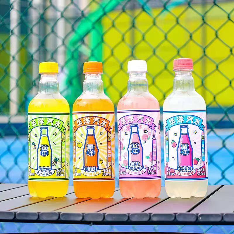 【5瓶】华洋汽水果汁汽水饮料橙子苹果荔枝白桃樱花500ml塑料瓶装