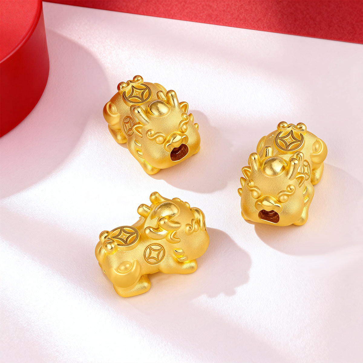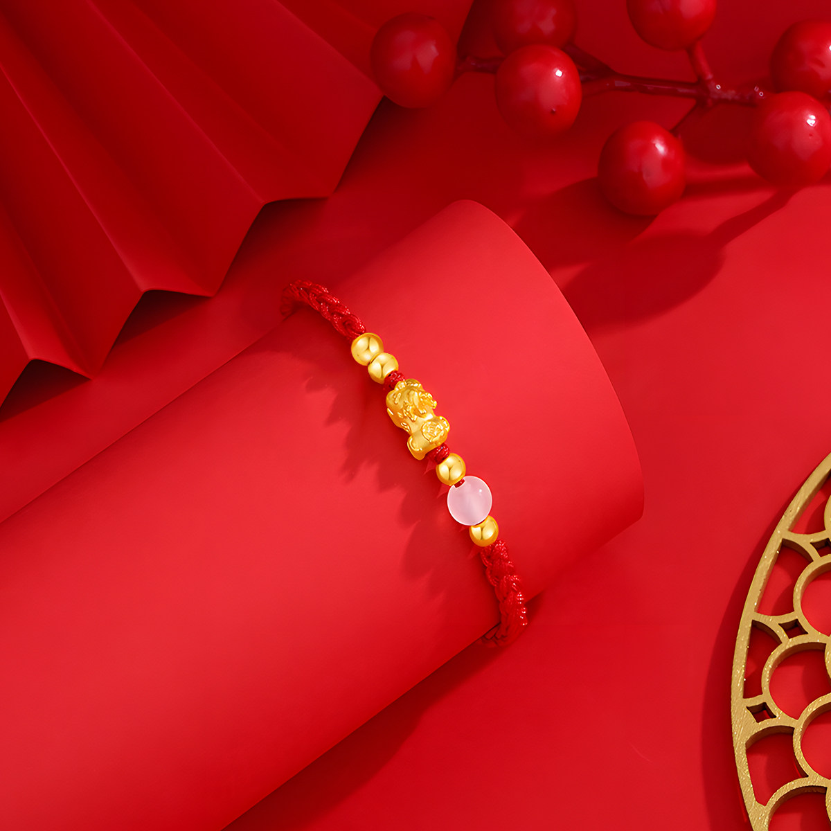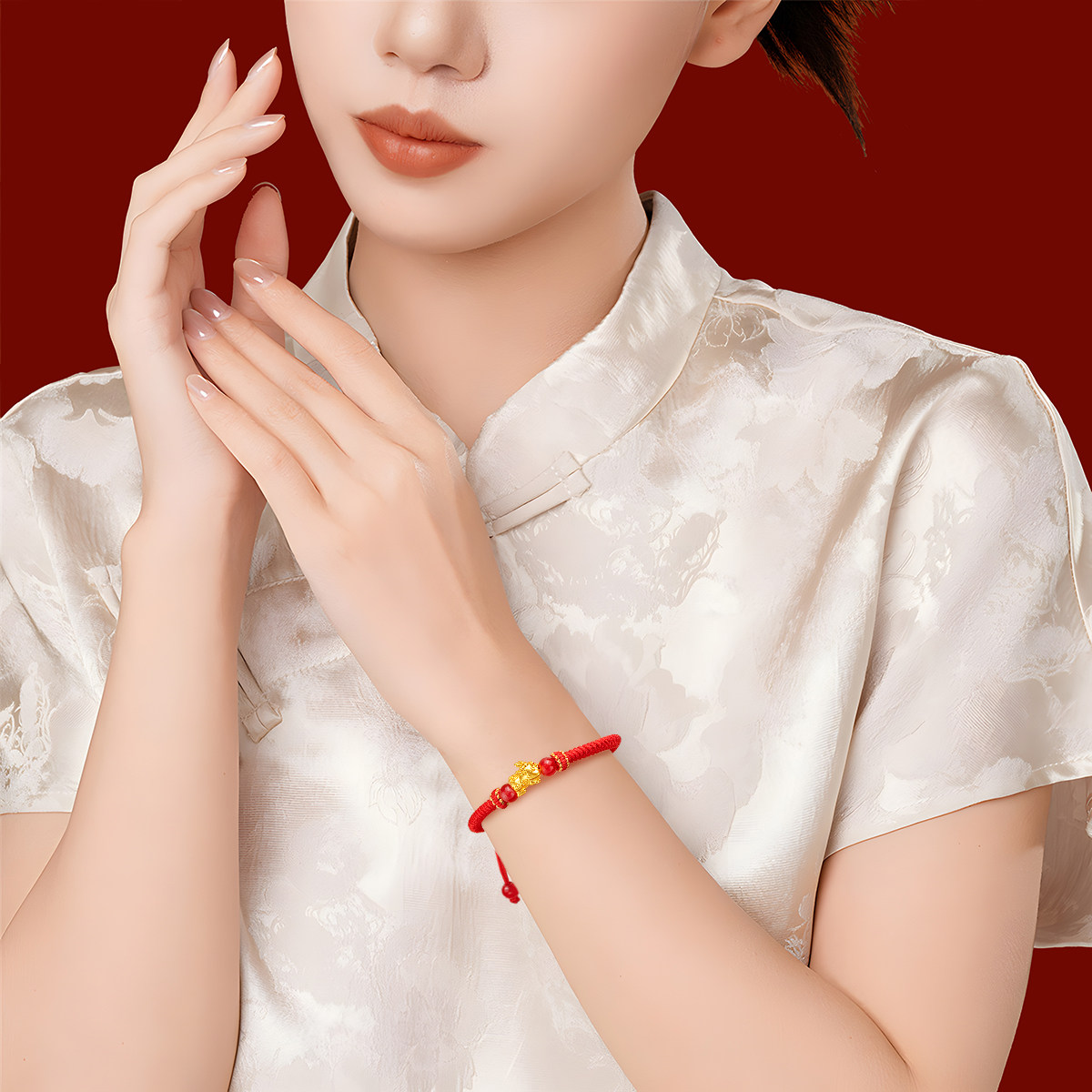 CEMNI/千年珠宝黄金手链女足金999貔貅宝宝红绳手链皮丘转运珠新