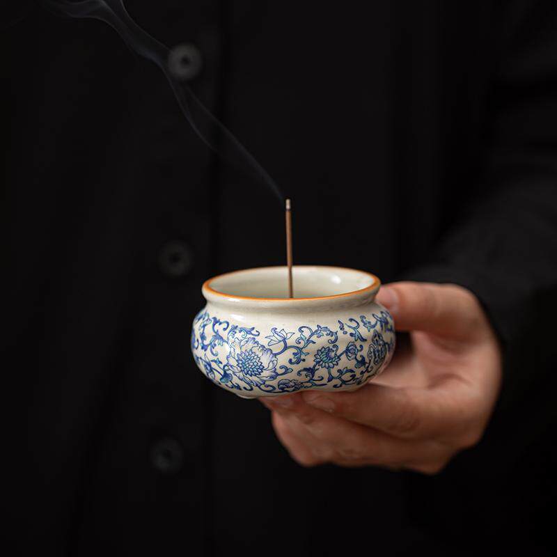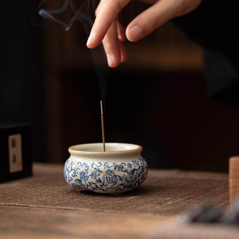 敦铭堂创意陶瓷香插室内香薰香托香座禅意摆件香器香道配件装饰品