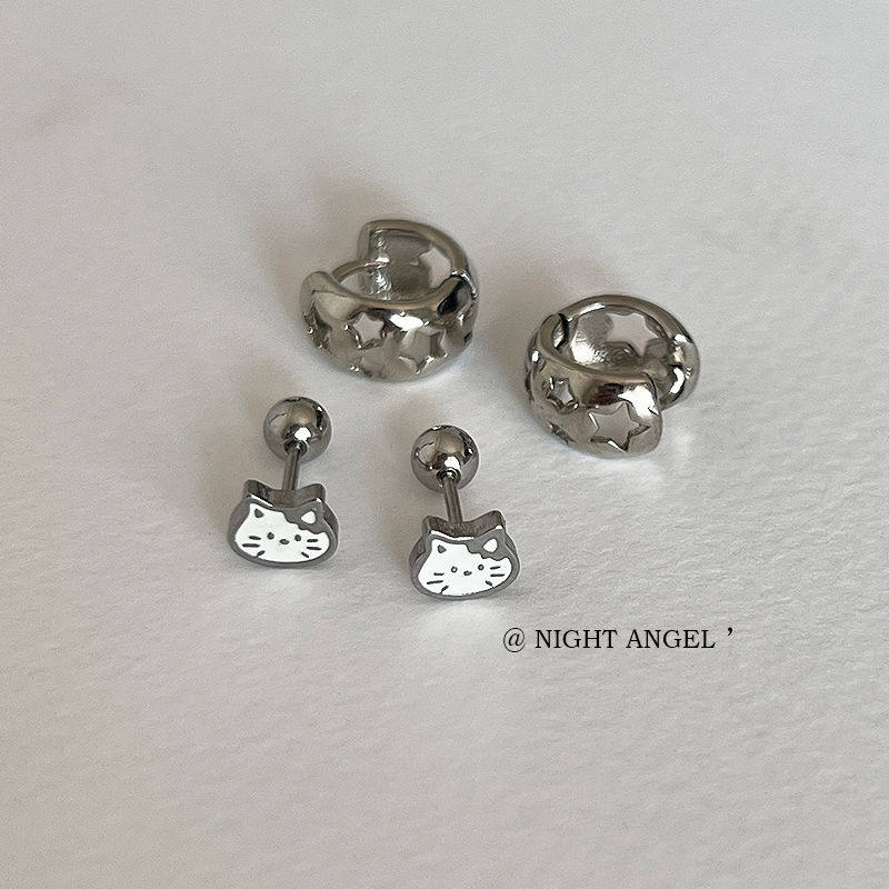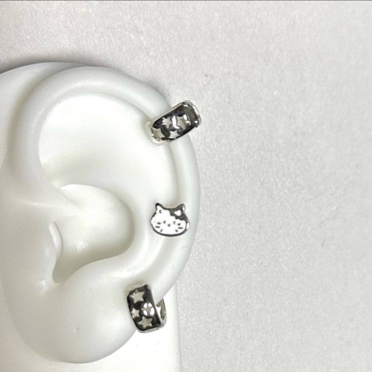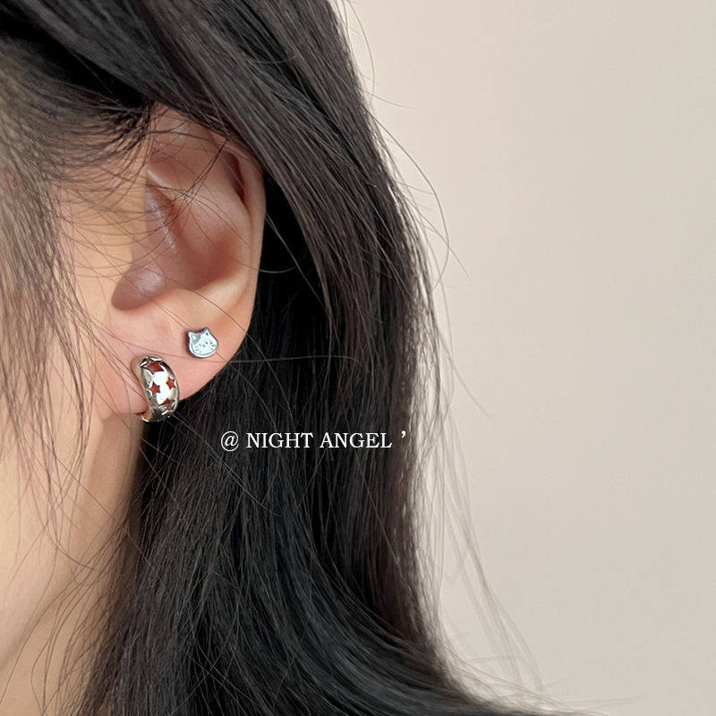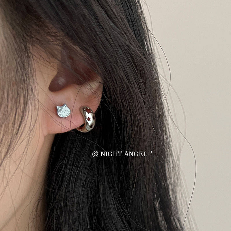 「喵星人」白色滴釉小猫耳骨钉2024新款高级感时尚镂空星星耳扣女