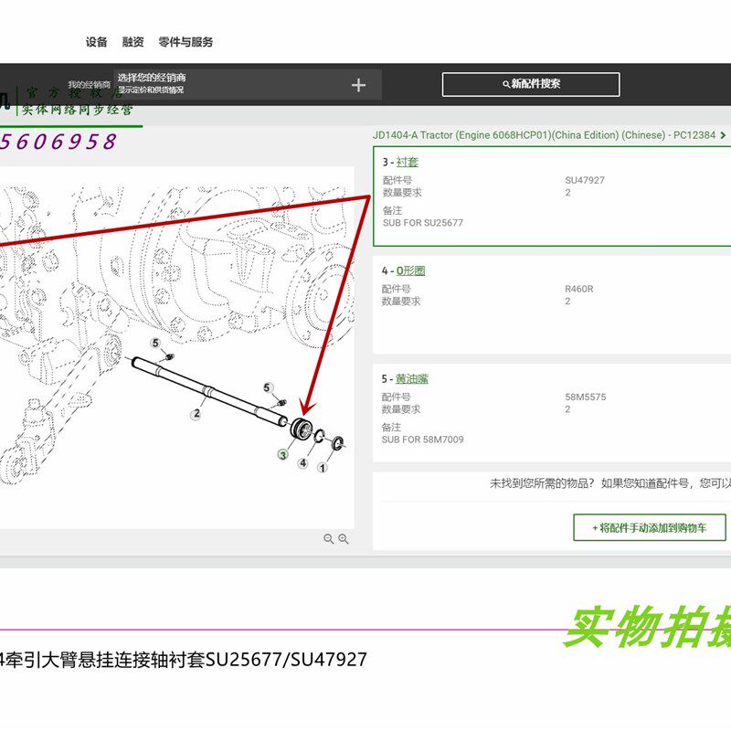 新品SU47927约翰迪尔拖拉机原厂配件954 120N4 1404悬挂连接轴衬