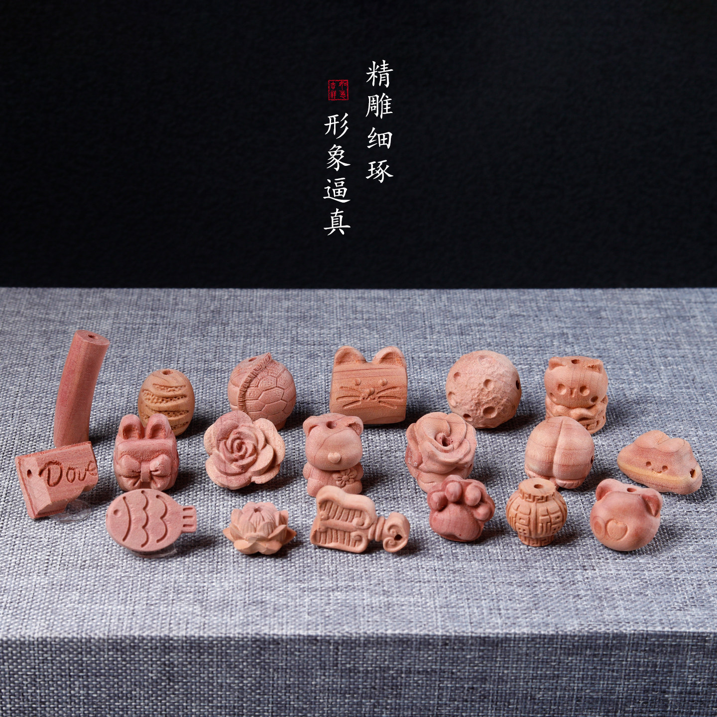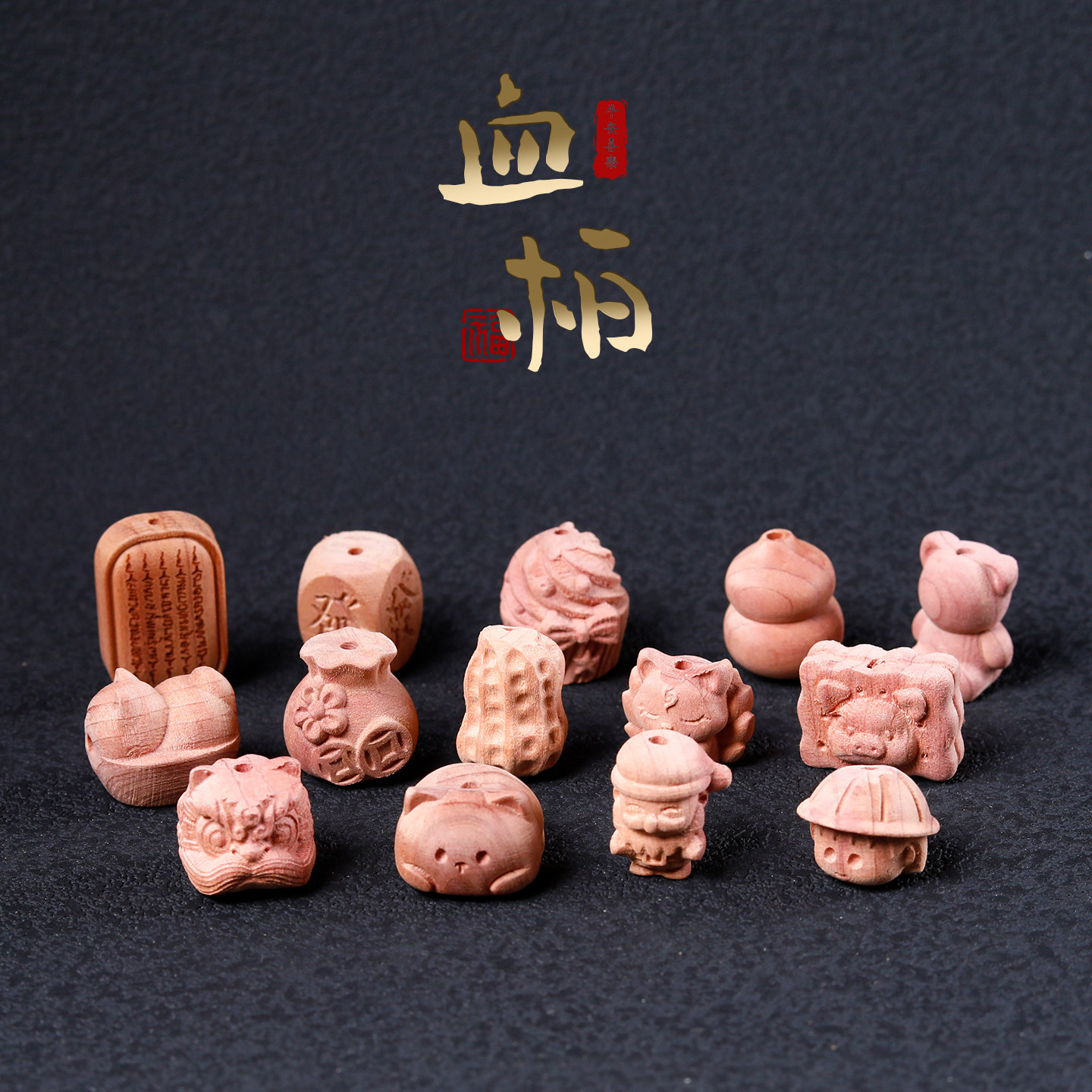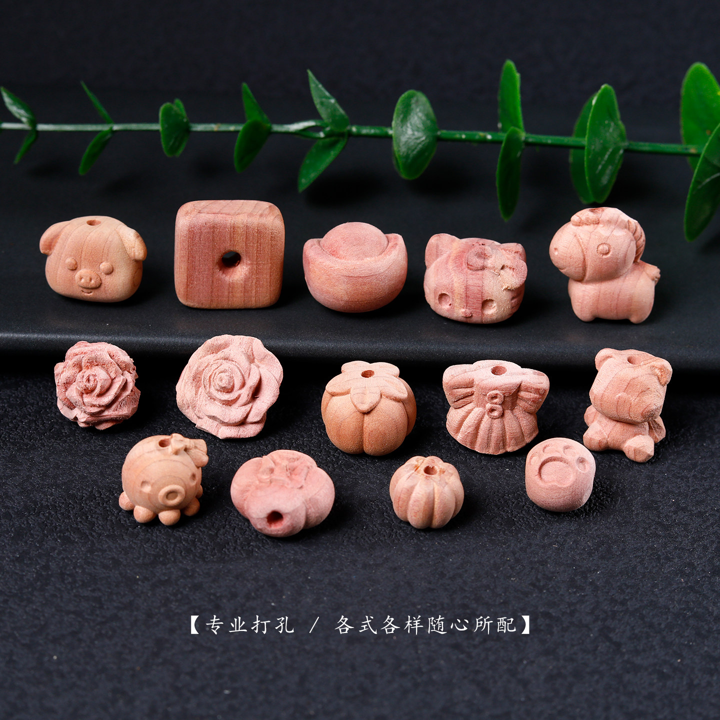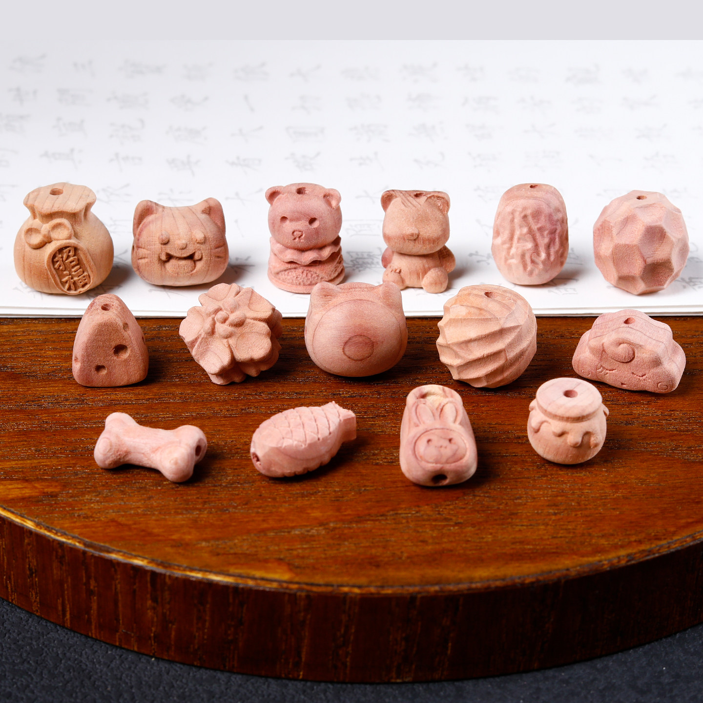血柏木雕刻卡通可爱文玩佛珠配饰手工DIY饰品手串手链钥匙扣隔珠