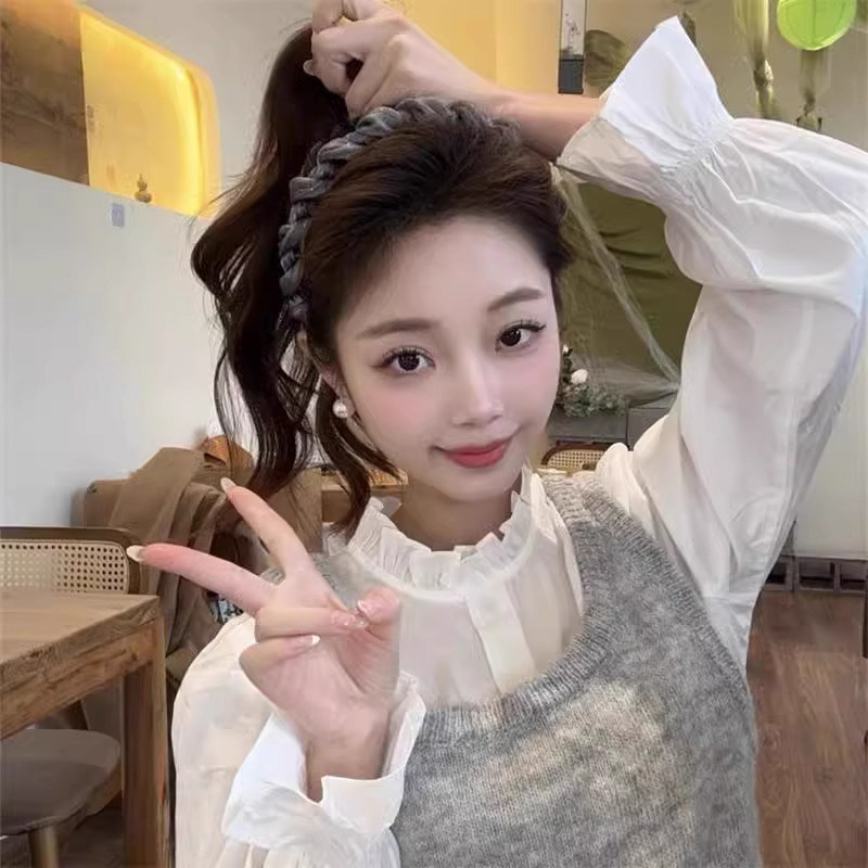 小香风高级感珠光网纱发箍女款2025新款日常外戴高颅顶头箍发卡
