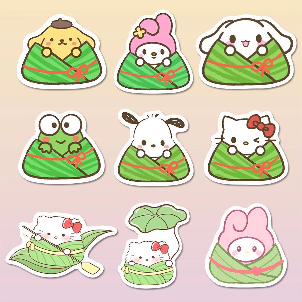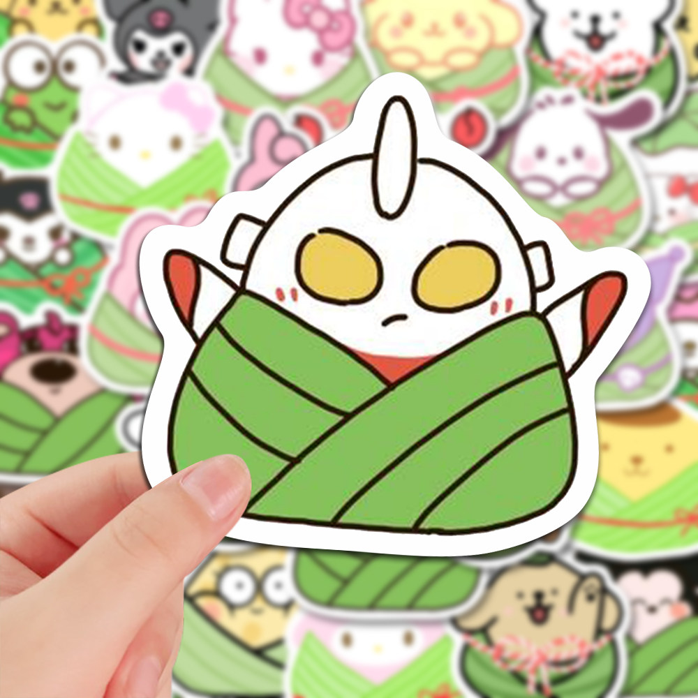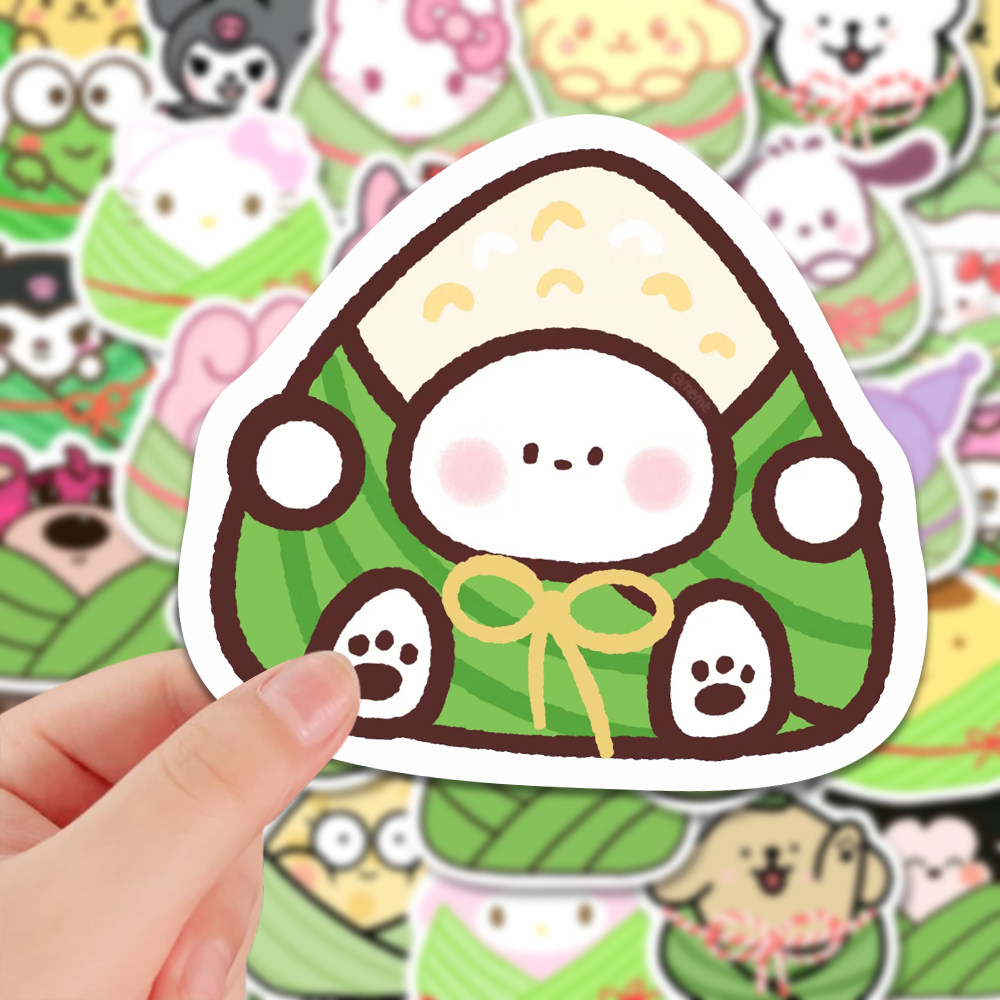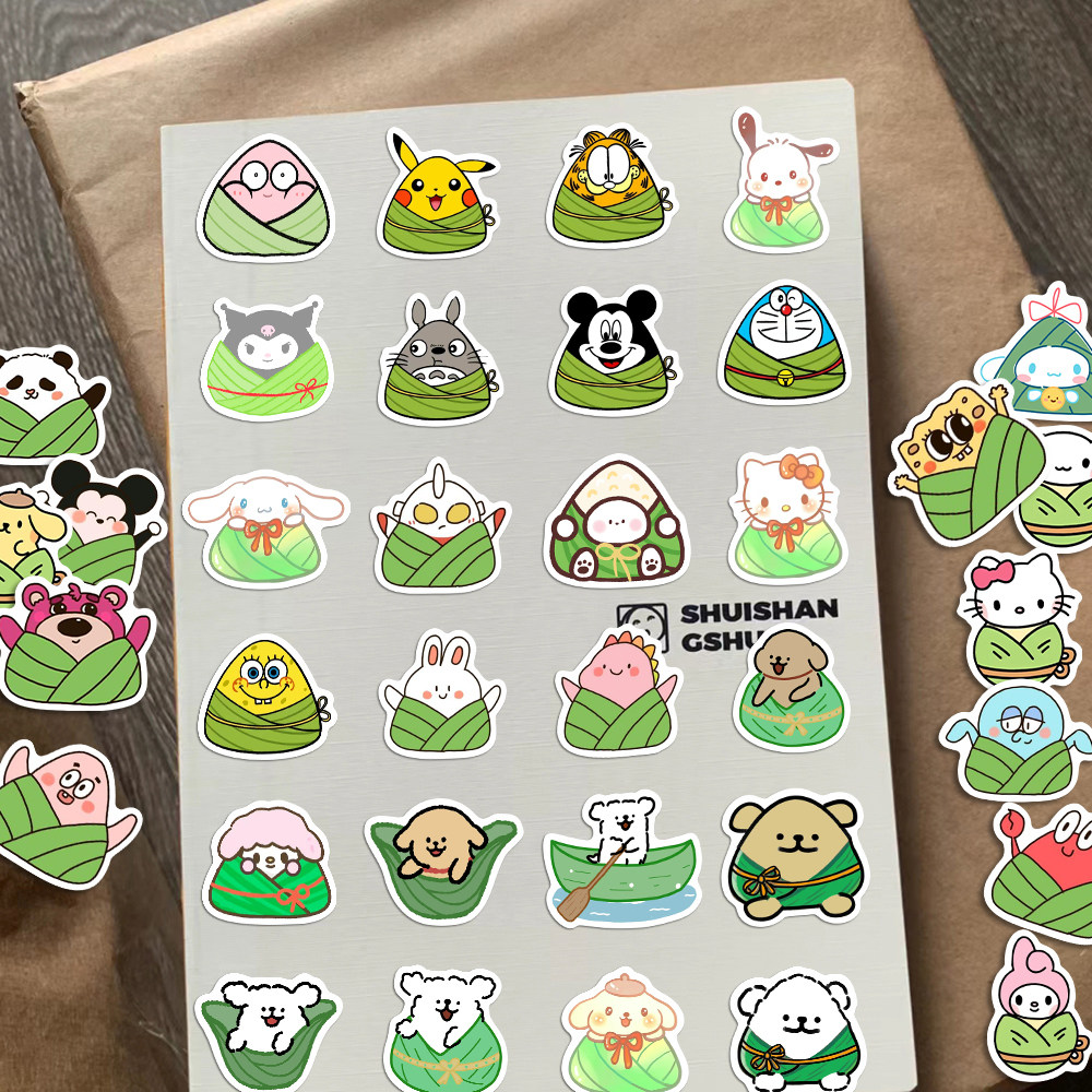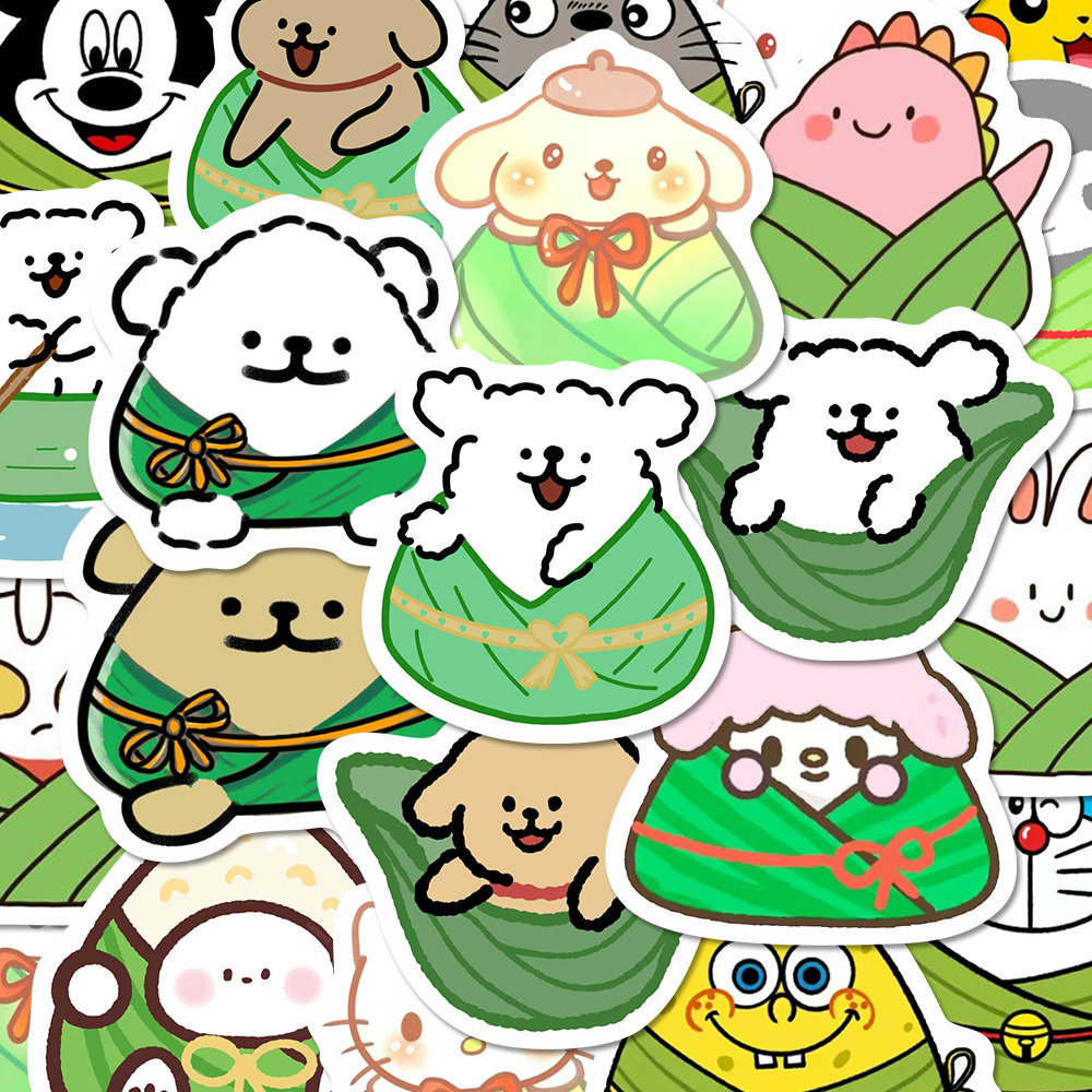 128张卡通粽子贴纸创意可爱端午粽子手账diy手机桌面贴画