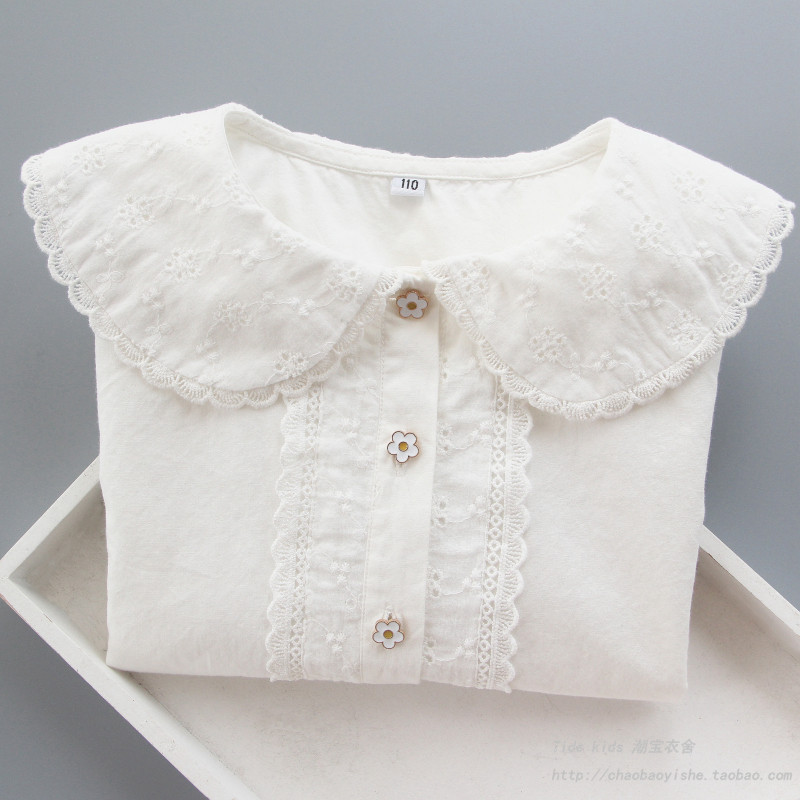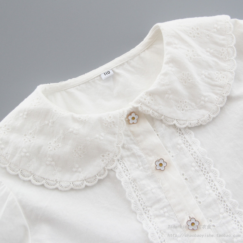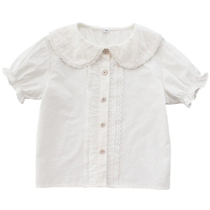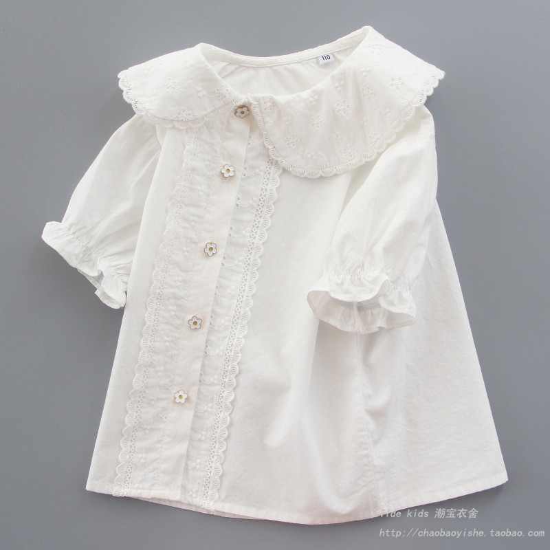 女童纯棉白色短袖衬衫夏装新款儿童洋气公主衬衣小女孩夏季娃娃衫