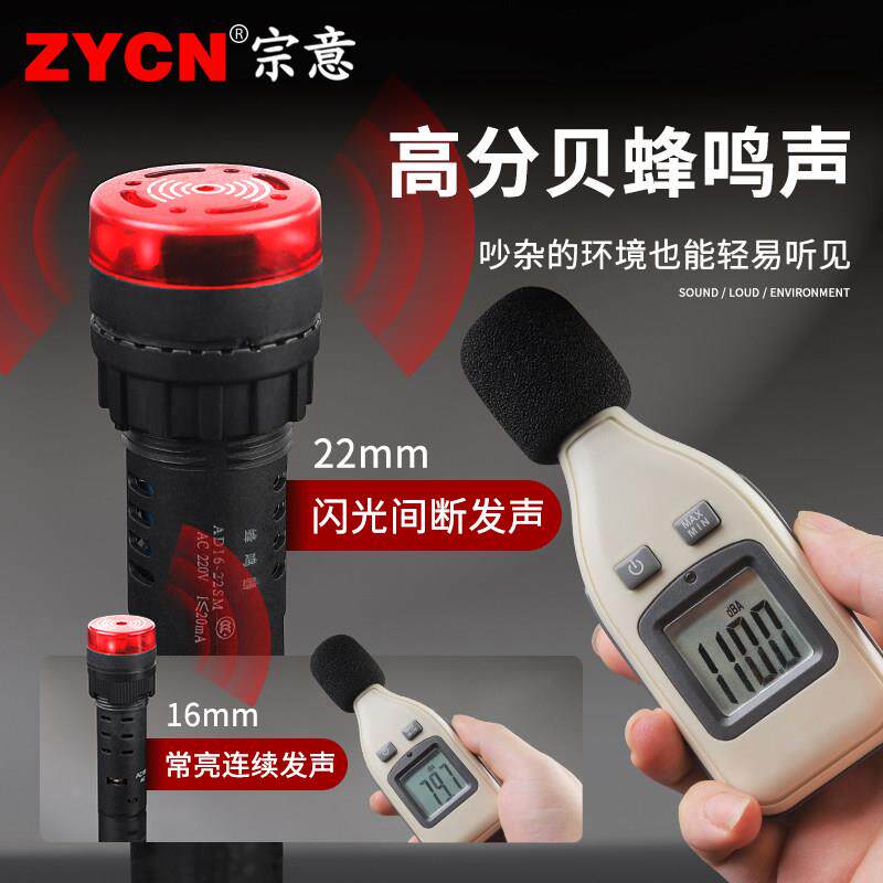 AD16-22SM蜂鸣器响亮断续带灯闪光LED声光报警器交直流220v24v12v