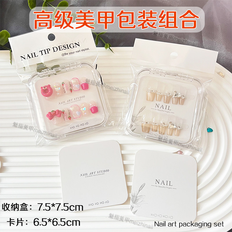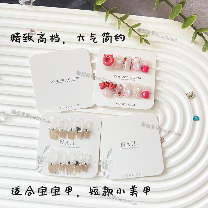 穿戴甲卡纸6.5cm美甲小卡片搭配收纳盒打包高级简约指甲配招道具