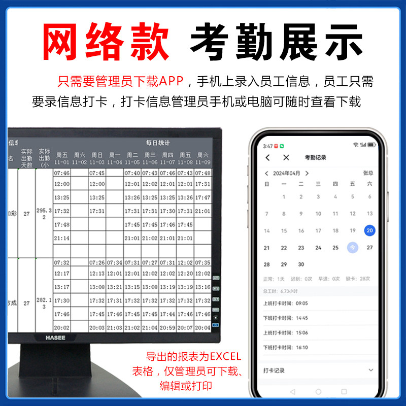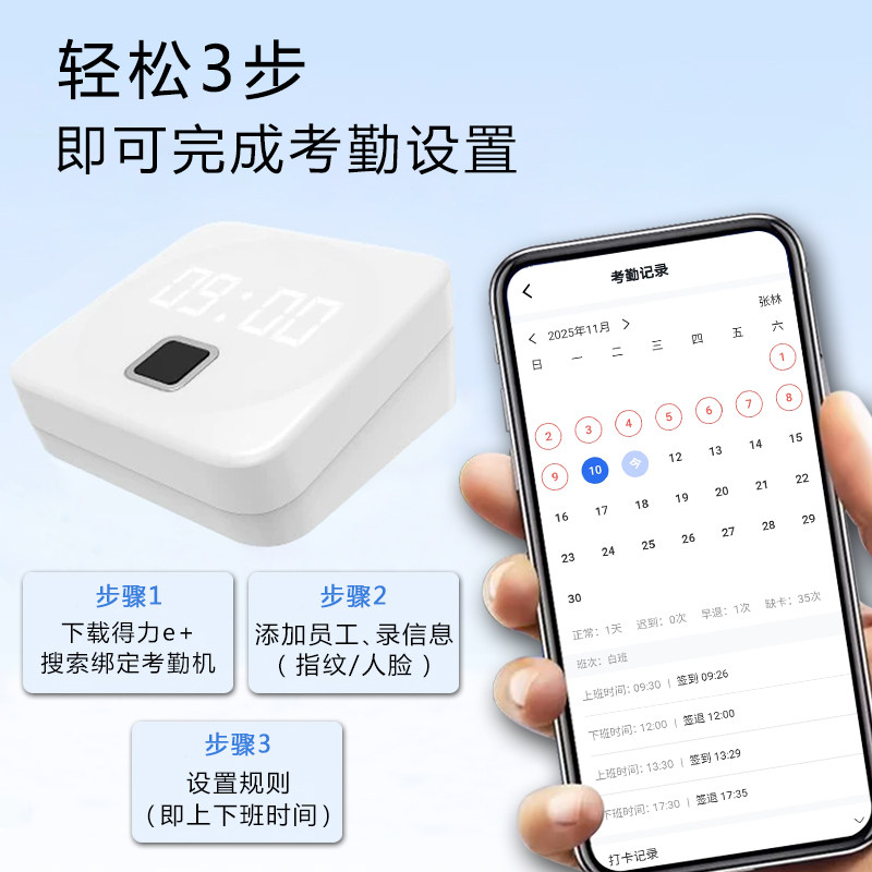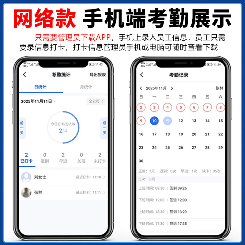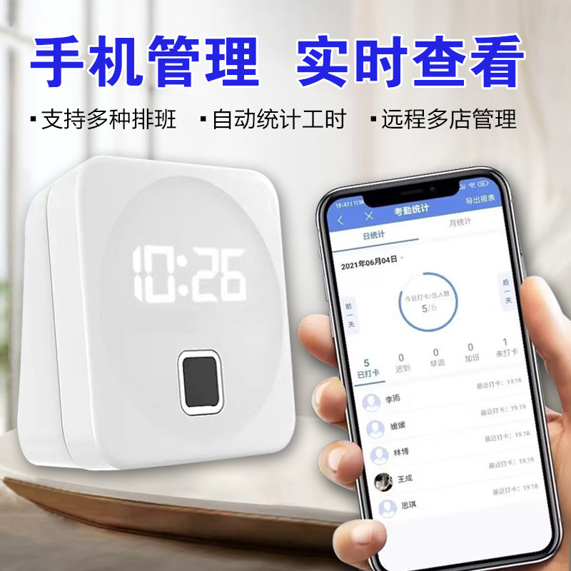 智能云指纹打卡机考勤机员工上下班手指签到手机查看自动报表