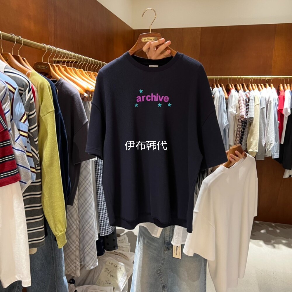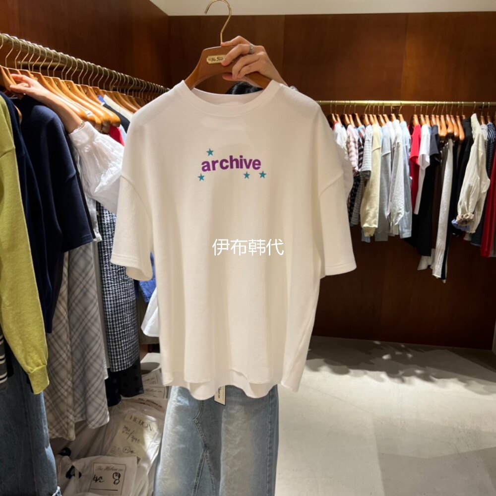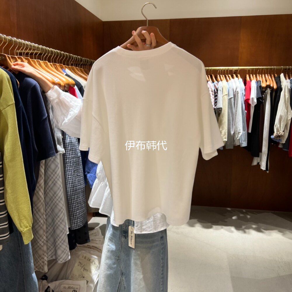 HEBON韩国东大门正品代购26春款 休闲简约字母棉质宽松短袖T恤