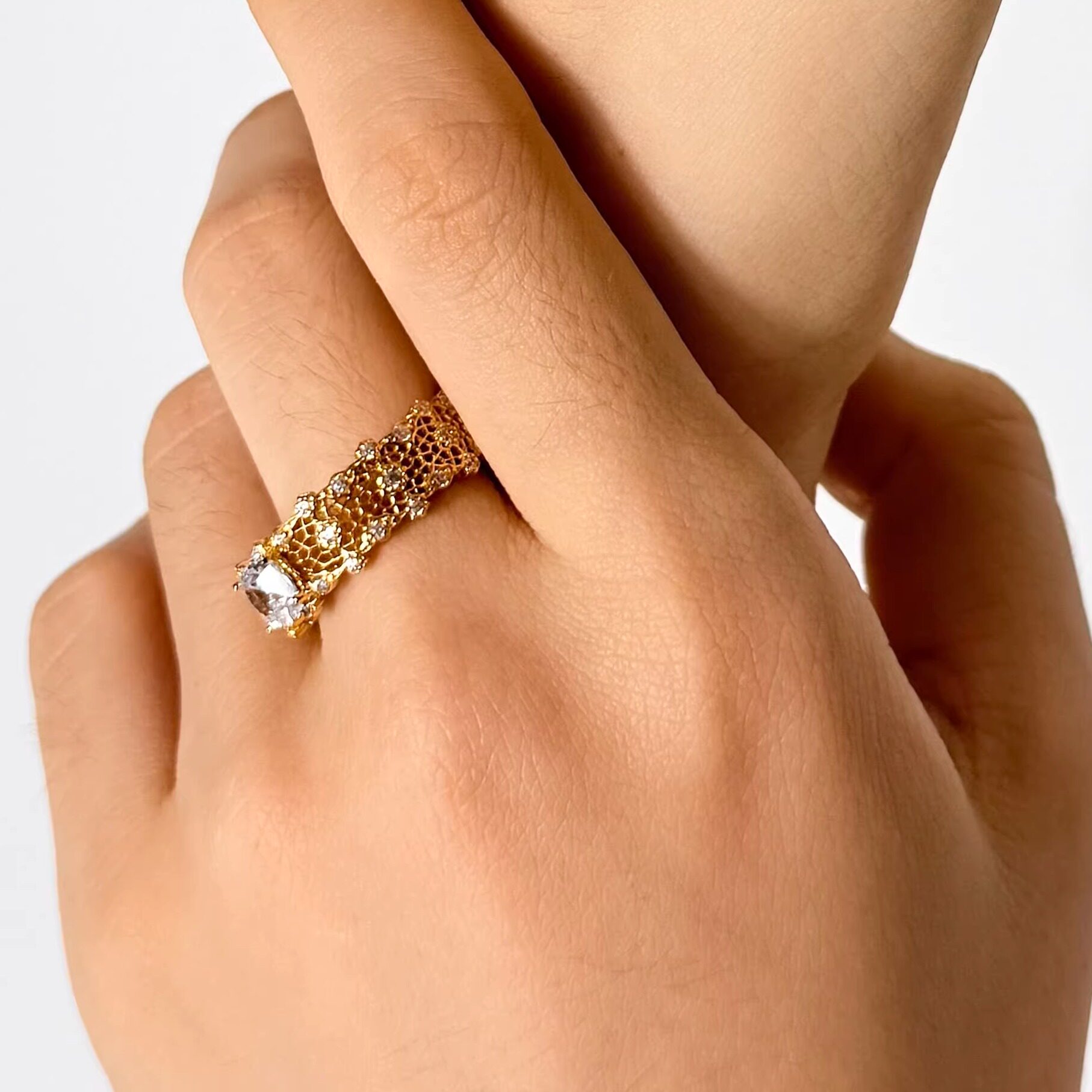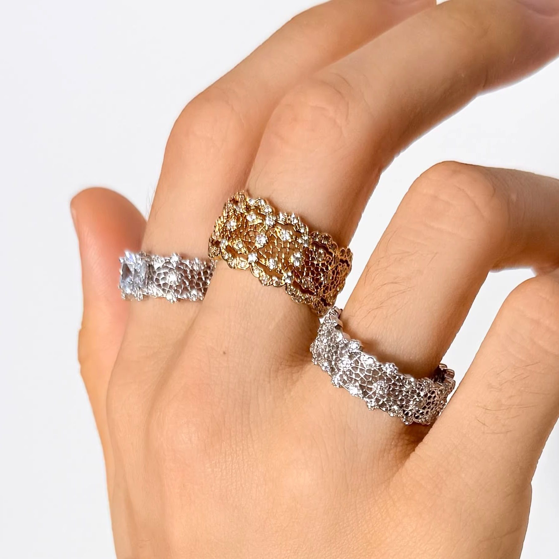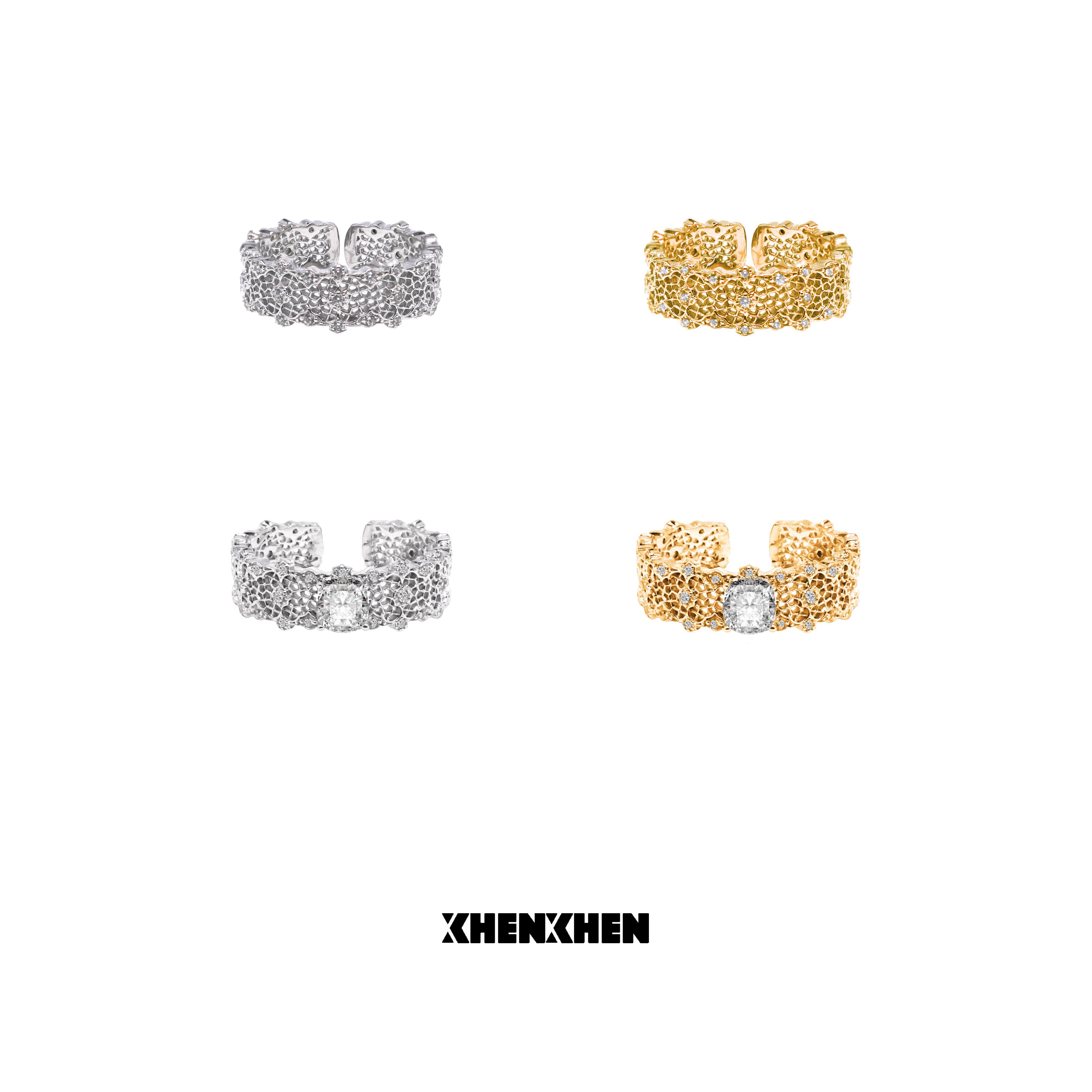 xhenxhen蕾丝系列金靖同款细版戒指宝石小众设计复古镂空开口调节